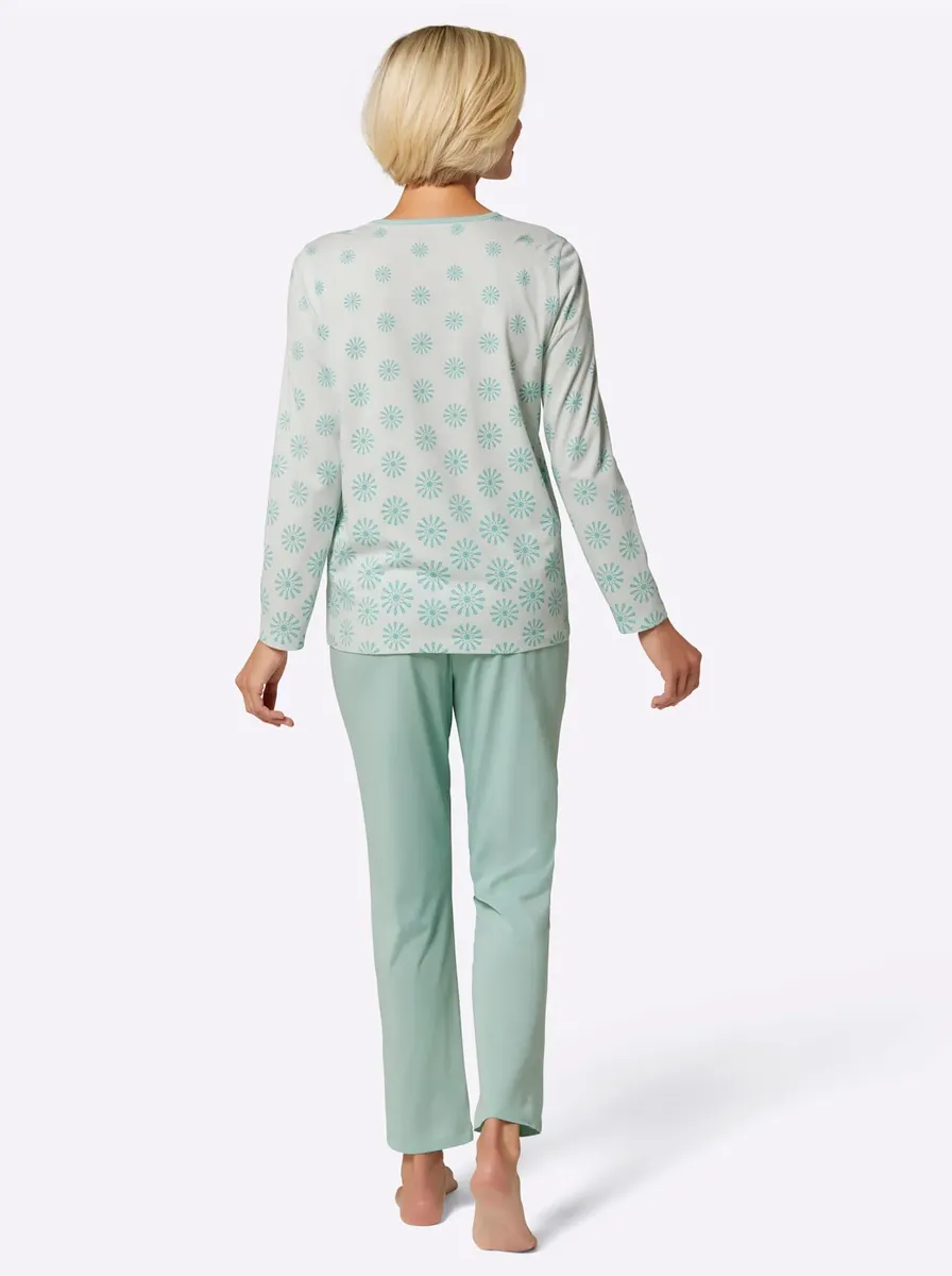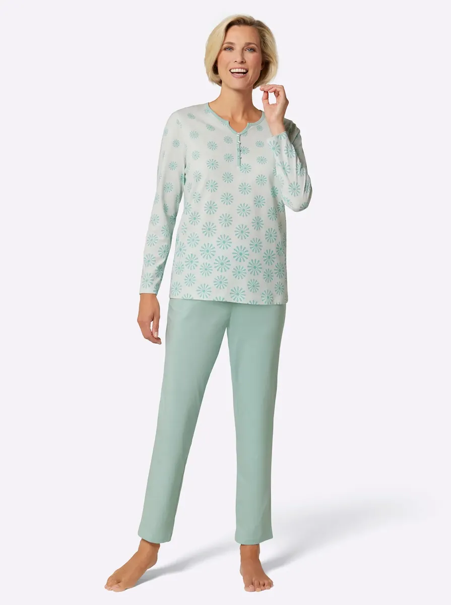 Дизайн, качество и цена этой пижамы впечатляют! Круглый вырез с небольшой буквой V, отделанный контрастной окантовкой, и длинная планка с пуговицами. Однотонные длинные брюки с эластичным поясом. Одинарный трикотаж. Поддержите инициативу «Хлопок, сделанный в Африке». 100% хлопок.