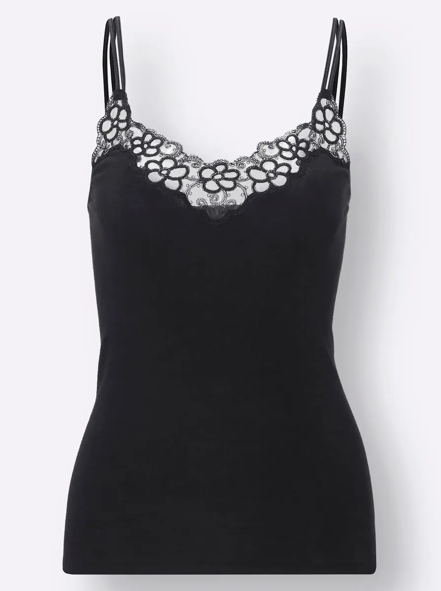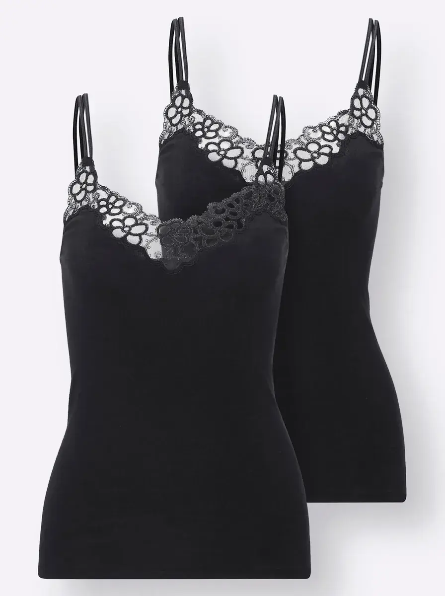 Изюминкой этой майки от Comazo в двойной упаковке является элегантное тюлевое кружево с вышивкой спереди на вырезе. С двойными лямками. Прекрасное качество ребер. 100% хлопок.