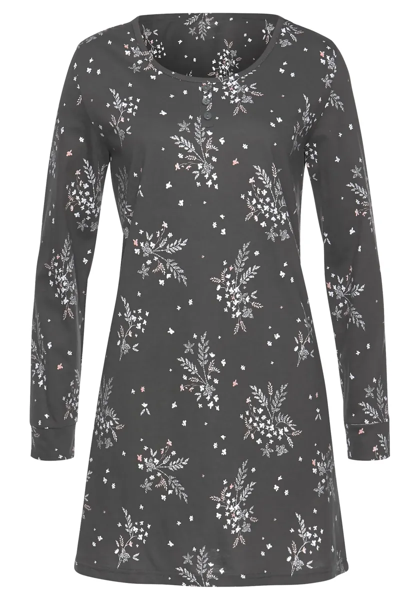 Ночная рубашка Vivance Dreams с гортензией, антрацит