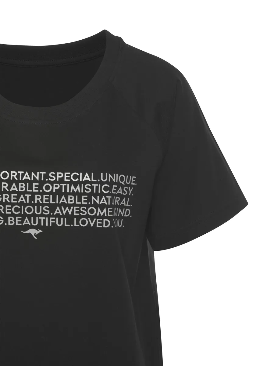 Короткая ночная сорочка от KangaROOS. Текстовый принт спереди. Круглый вырез. Рукава реглан. Мягкий трикотаж высокого качества.