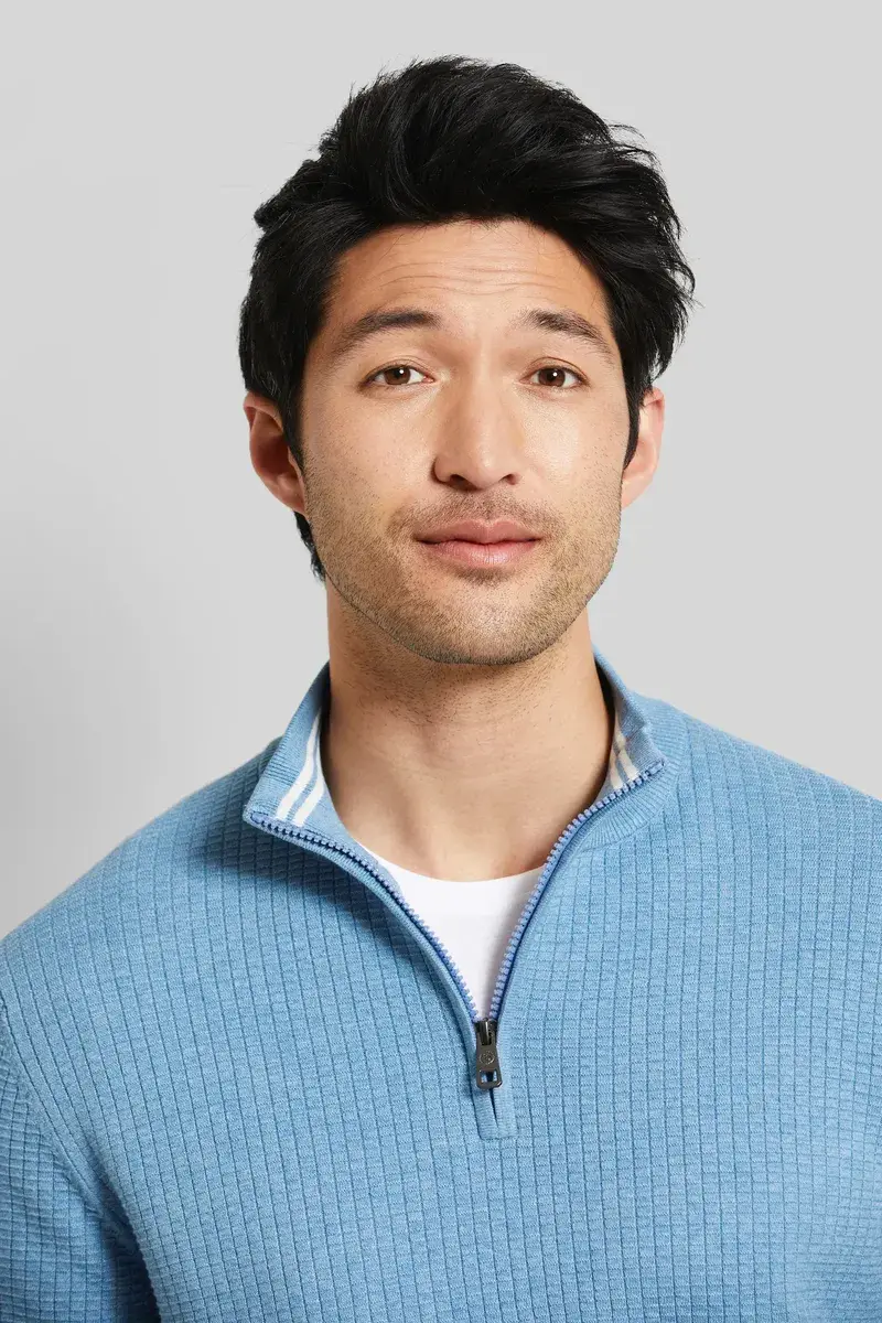 Must-have нашего сезона: высококачественное трикотажное трикотажное изделие с элегантным вафельным узором. Вечная одежда, которая идеально сочетает в себе тепло и стиль. Яркий рисунок вафельной структуры придает этому блюду индивидуальный оттенок и придает ему утонченную изысканность. Передняя молния — практичное и стильное решение. Этот тройник не только функционален, но и чрезвычайно моден.