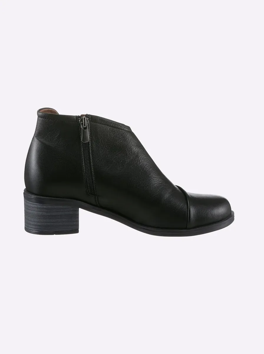 Короткие ботильоны Современный компаньон из тонкой воловьей кожи наппа. Подкладка текстильная, стелька кожаная. С застежкой-молнией. Высота стержня около 9 см. Высота каблука около 45 мм.