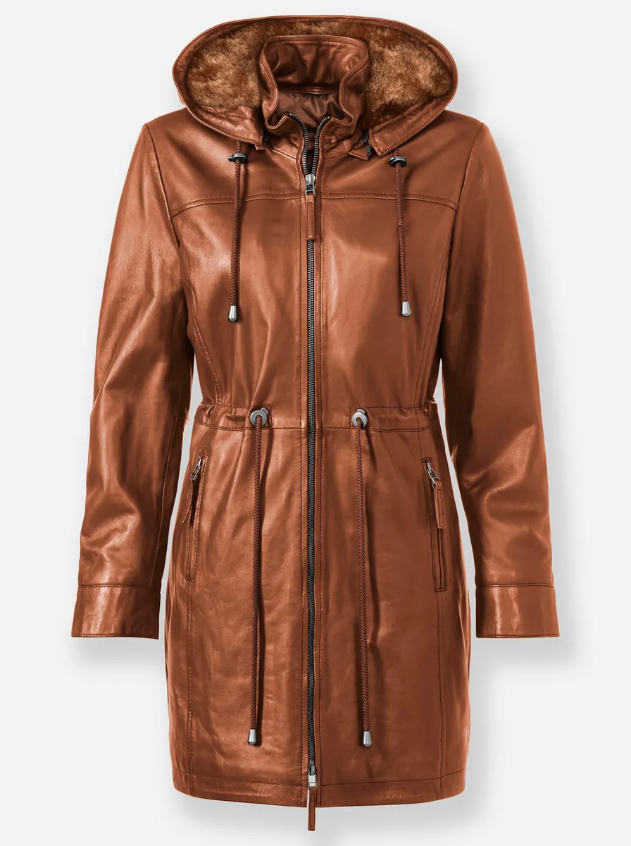 Кожаная куртка Mainpol с капюшоном, цвет Cognac 34 395₽