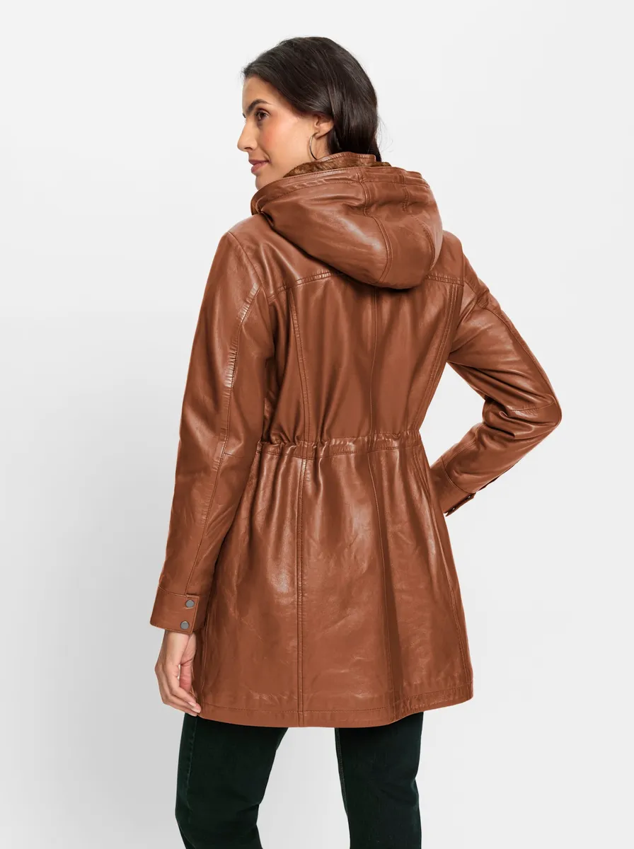 Кожаная куртка Mainpol с капюшоном, цвет Cognac