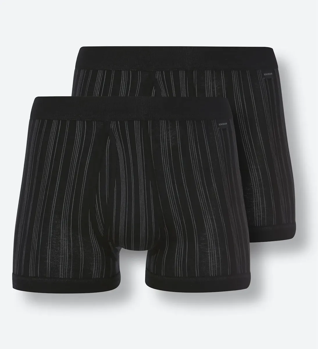 Короткие брюки от Schiesser в двойной упаковке со спортивным узором в полоску. Удобный мягкий пояс и ширинка. Нет раздражающих боковых швов, поэтому кожа ощущается особенно комфортно. Очень прочные ребра высокого качества. 100% хлопок.