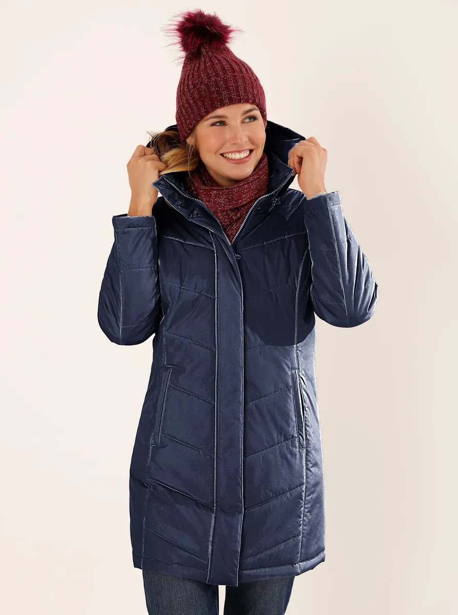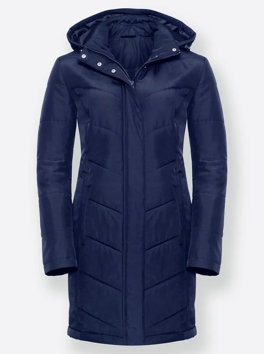 Длинная куртка не только выдерживает снег, дождь и ветер, но и подчеркивает фигуру благодаря длинному крою и выгодному стеганому узору. Со множеством практичных деталей: защитный воротник-стойка со съемным капюшоном, двусторонняя молния, скрытая планкой на кнопках, 2 врезных кармана и внутренний карман на пуговицах. Формирование разделительных швов. 100% полиэстер. Подкладка и наполнитель: 100% полиэстер. Машинная стирка.
