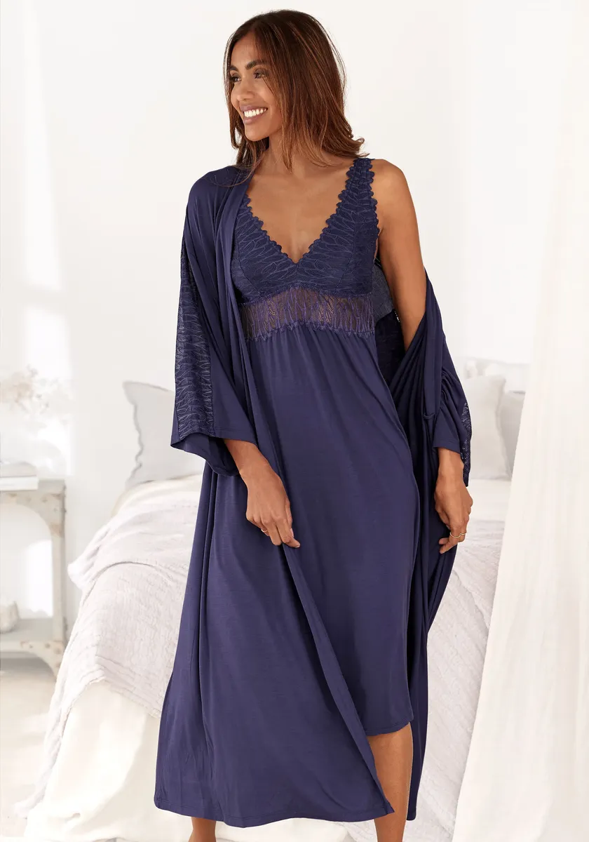 Кимоно LASCANA с кружевными деталями, синий