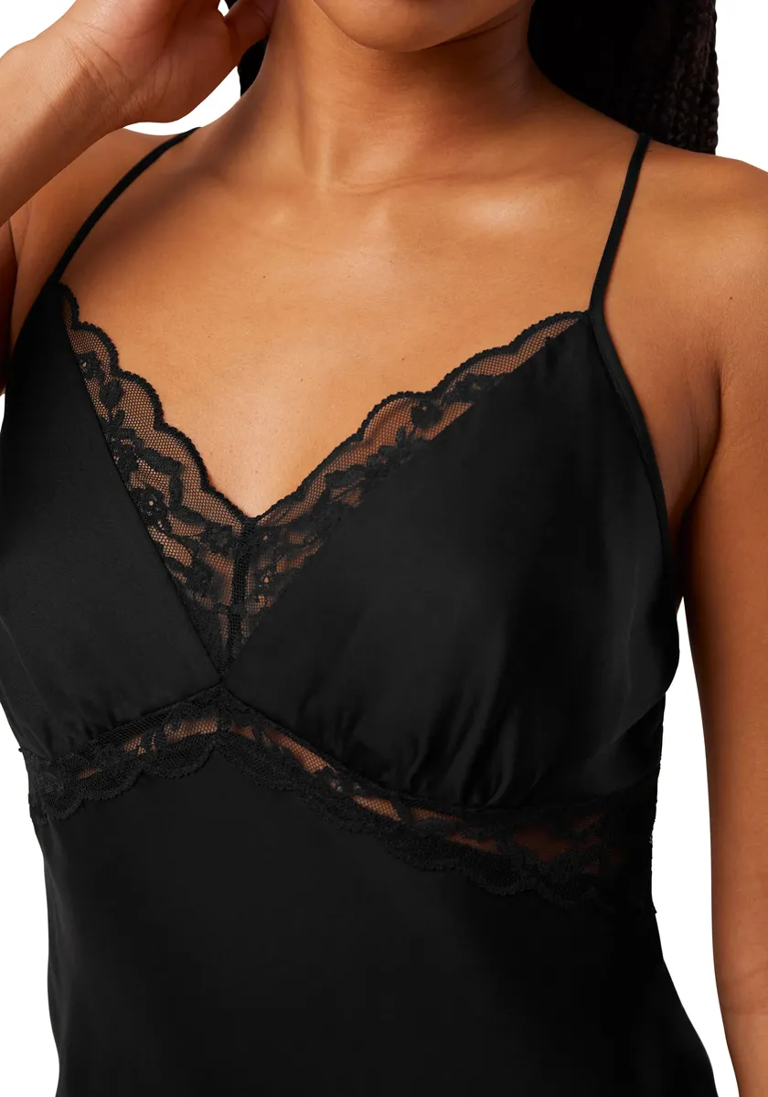 Длинное платье-комбинация с элегантными деталями на любой случай. Перекрещенные бретели сзади для дополнительной поддержки и кружевные вставки для чувственности. Изготовлен из 100% лиоцелла TENCEL.