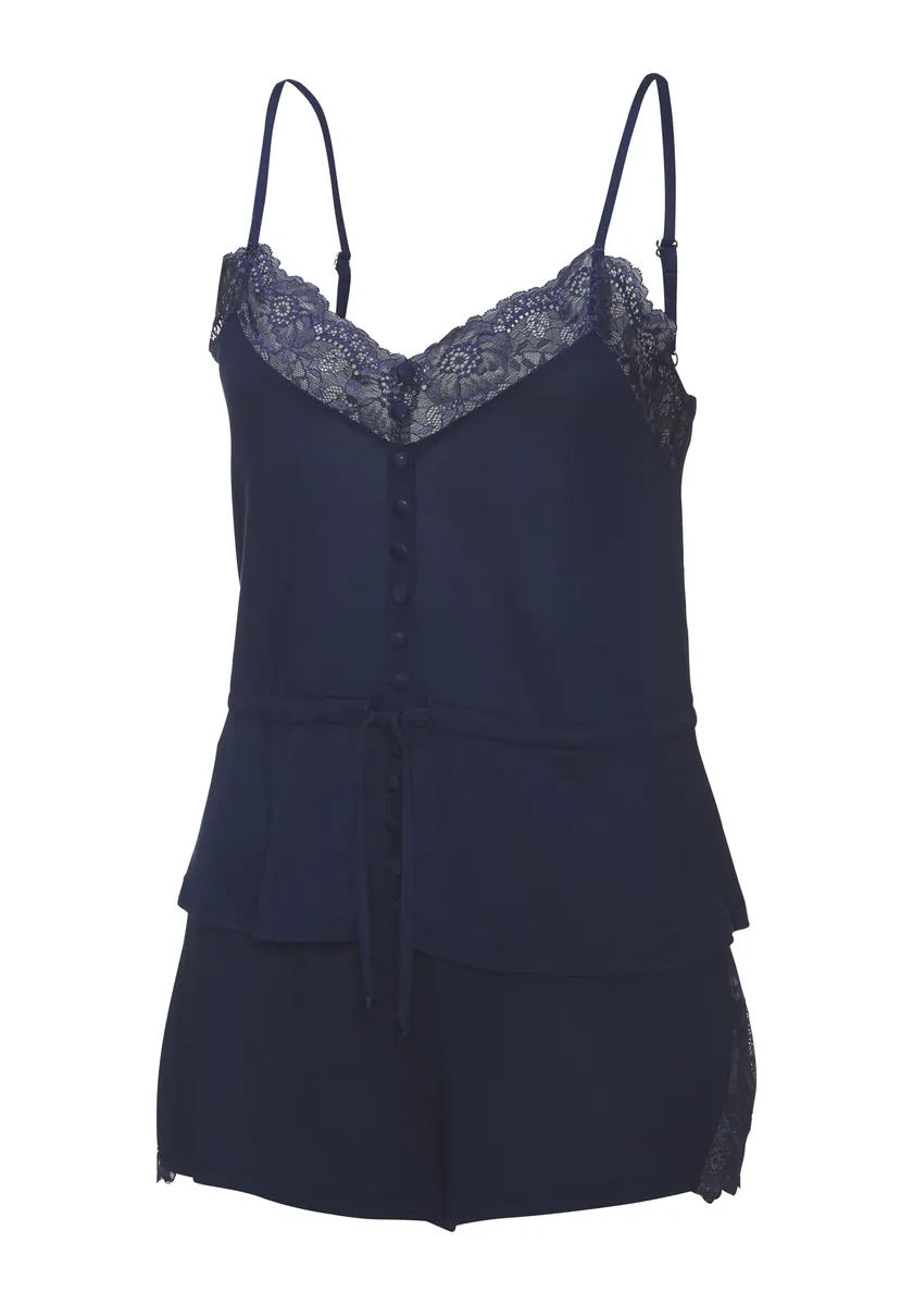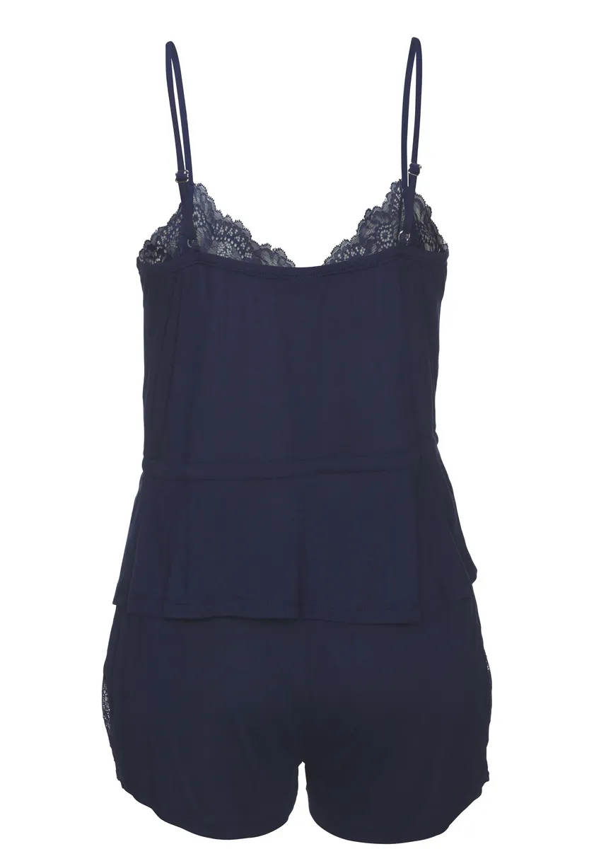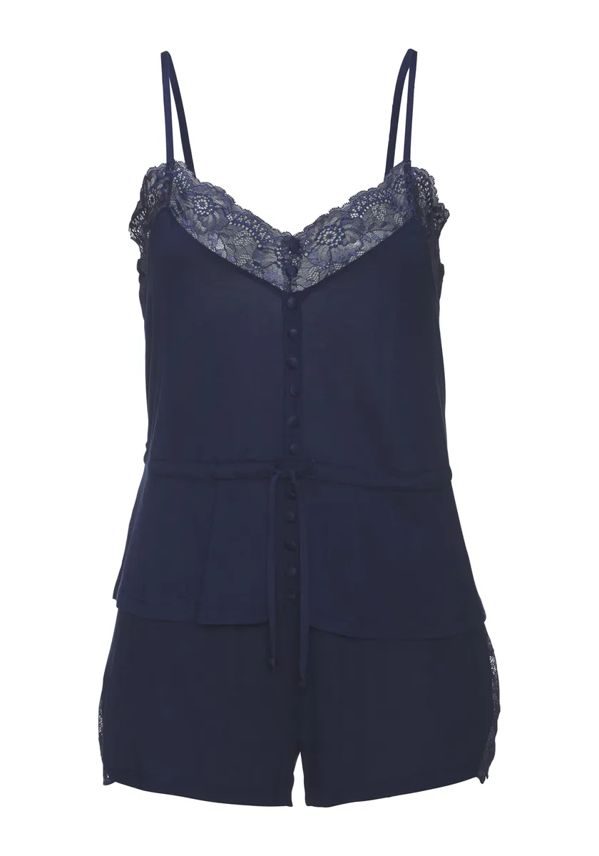 LASCANA Пижама (2 шт.), с кружевными вставками, синий