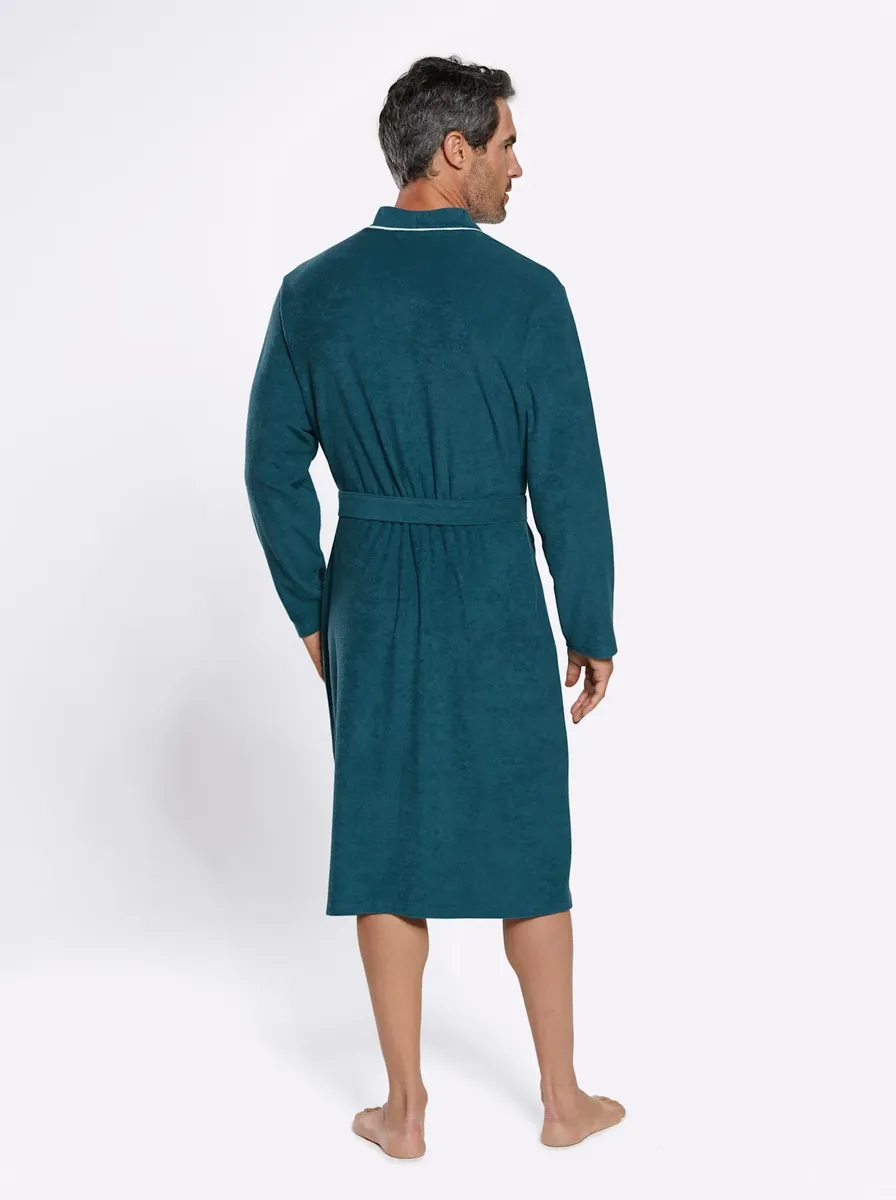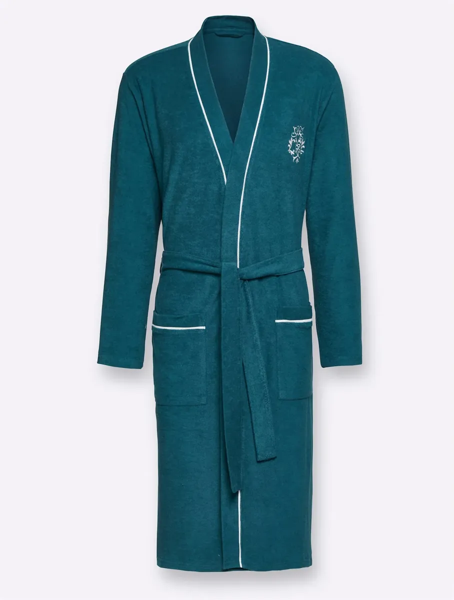Этот халат модной формы кимоно выглядит элегантно благодаря окантовке контрастного цвета. С 2 накладными карманами и вышивкой. Завяжите пояс с помощью шлевок. Мягкая легкая махровая ткань. Поддержите инициативу «Хлопок, сделанный в Африке». 80% хлопок, 20% полиэстер.