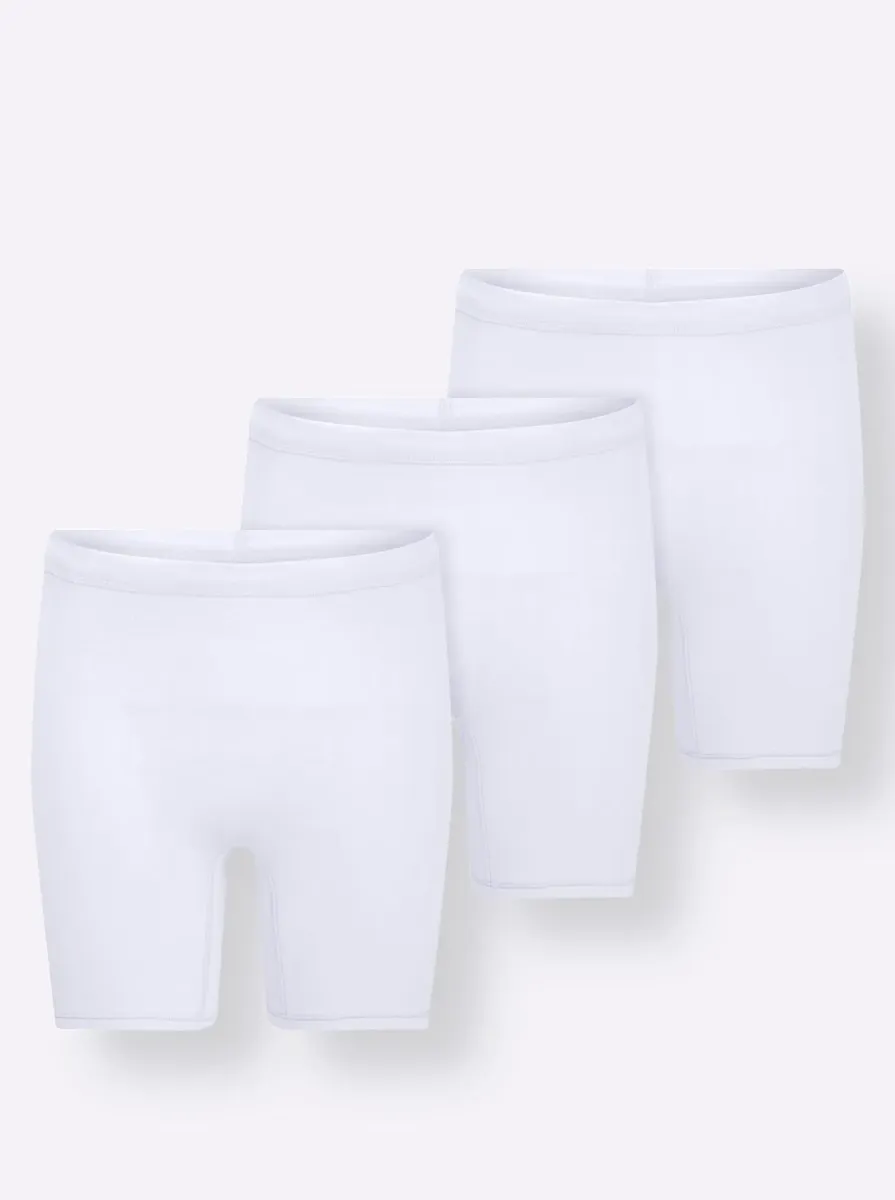 Длинные трусики от Waschpur в недорогой упаковке по 3 штуки. С мягким поясом, двойной ластовицей и удобными манжетами на ногах. 95% хлопок, 5% эластан.