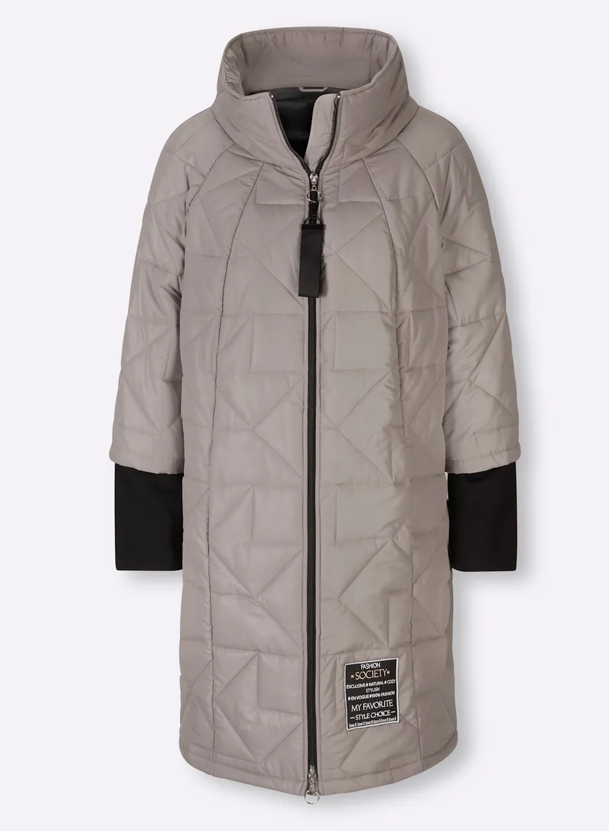 Короткое пальто с теплой подкладкой и эффектной стежкой. Слегка блестящее качество. Удобные вставки из трикотажа и декоративная наклейка спереди. Воротник-стойка, боковые карманы и двусторонняя молния. Длинные рукава с широкими эластичными манжетами. 100% полиэстер. Подкладка: 100% полиэстер. Манжеты: 68% вискоза, 5% эластан, 27% полиамид. Наполнитель: 100% полиэстер. Машинная стирка.