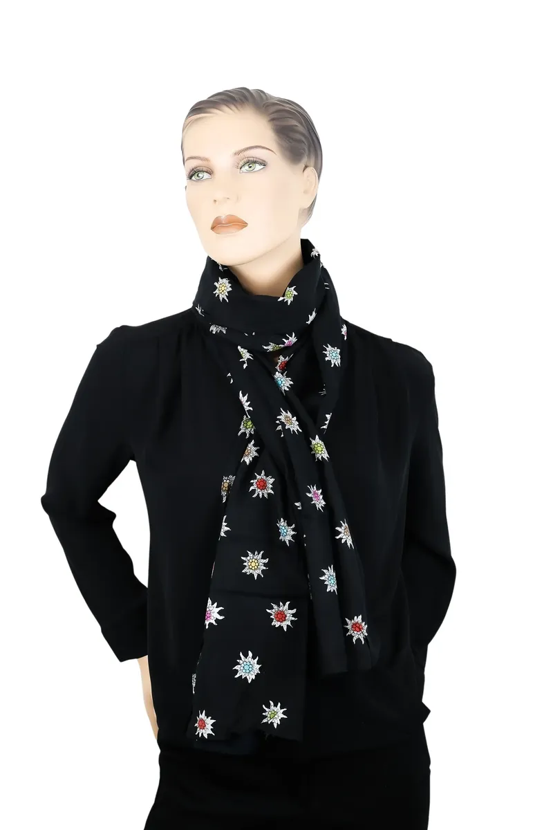 Шарф Allgäu Rebell "Эдельвейс", черный с яркими мотивами Эдельвейс, черный