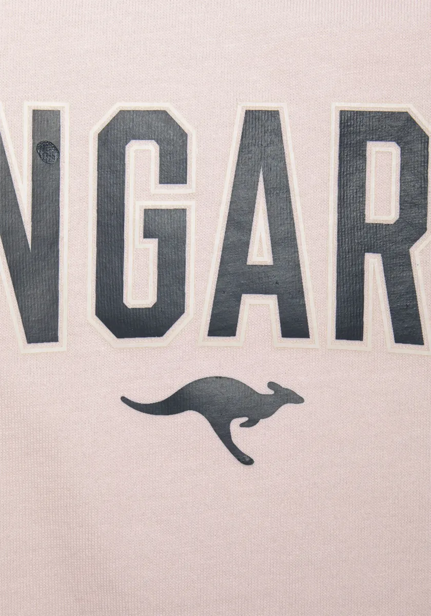 Коротышка из Кенгуру. В студенческом виде. Футболка с контрастными рукавами реглан и контрастной окантовкой на V-образном вырезе и манжетах. Крупная надпись спереди. Шорты с эластичным поясом на кулиске контрастного цвета. Удобный однотонный трикотаж.