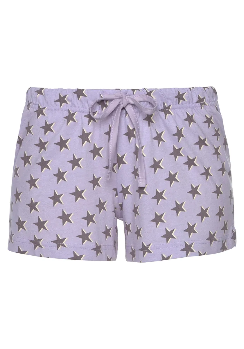 Коротышка от Vivance Dreams в практичной двойной упаковке. Короткие брюки со звездным принтом, эластичным поясом на кулиске и короткими разрезами по низу. Футболка с V-образным вырезом на круглом вырезе. Удобная посадка. Мягкий качественный хлопок.