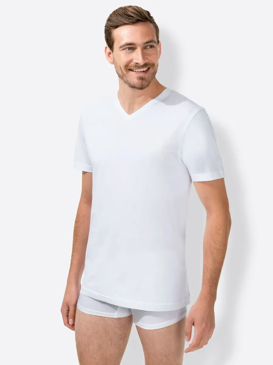 Эффектная рубашка от Bugatti с V-образным вырезом и рукавами средней длины. Изготовлен из приятного для кожи одинарного джерси. 100% хлопок.
