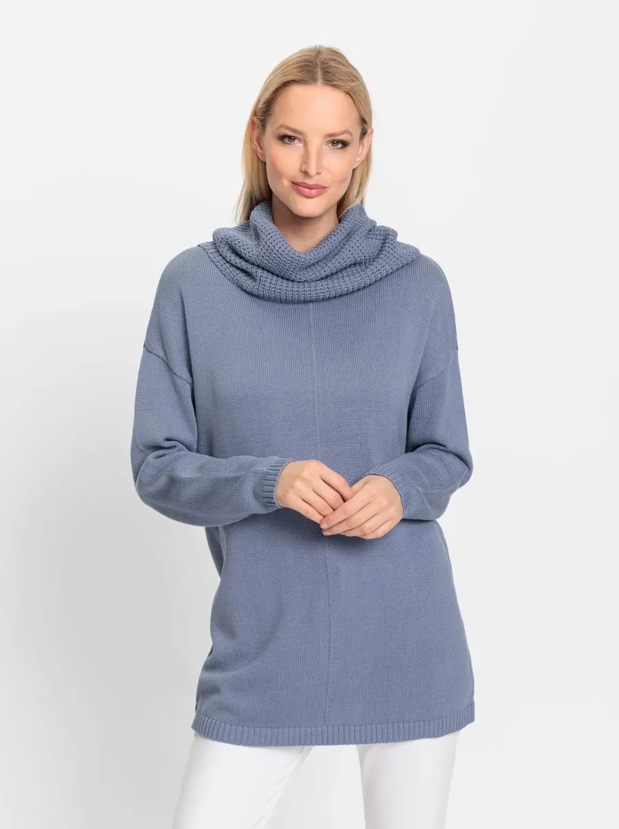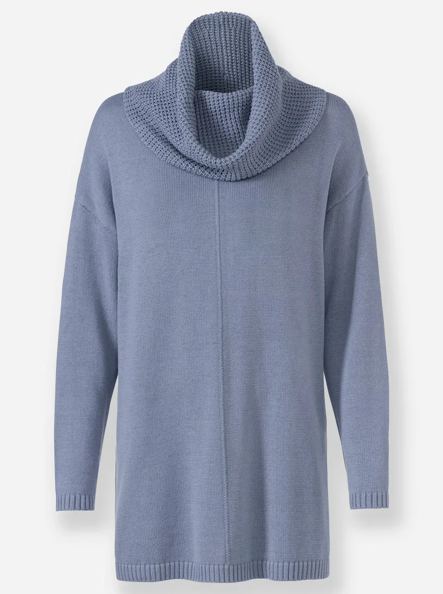 Длинный свитер с повседневной широкой водолазкой из комфортной смеси хлопка. Вырез на плечах, ребристые манжеты на манжетах. Поддержите инициативу «Хлопок, сделанный в Африке». 50% хлопок, 50% полиакрил. Машинная стирка.
