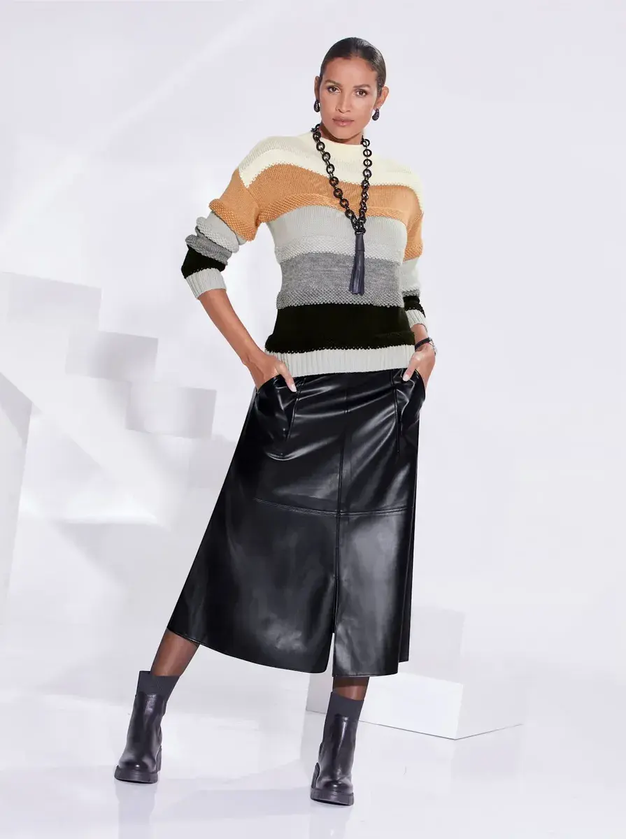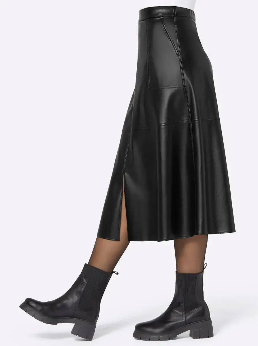 Юбка из искусственной кожи слегка расклешенной формы впечатляет своей непринужденной элегантностью и мягкостью, как перчатка. Как и натуральная кожа, она обработана характерными разделительными швами. Удобный пояс с внутренней резинкой. 2 передних кармана. Сзади разрез. 100% полиэстер. Машинная стирка.