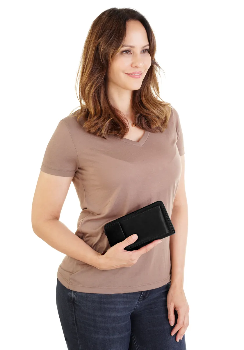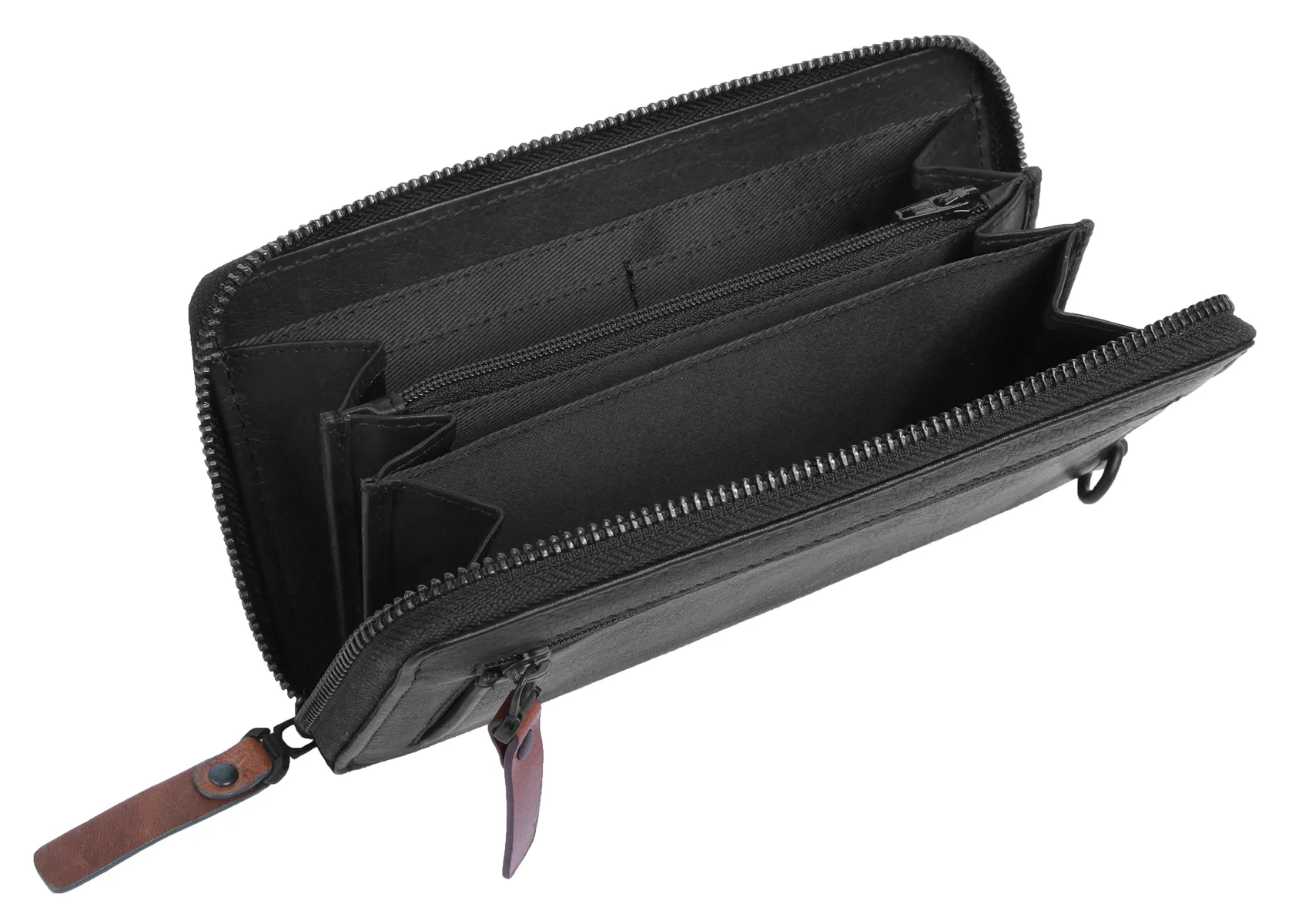 Кошелек от X-ZONE – маленькое повседневное чудо. Вы это знаете? Вы уже спрятали сотовый телефон и ключи в карманы куртки, а бумажника нет? Но вы не хотите брать с собой сумку только из-за кошелька? Тогда вы нашли решение здесь! Этот кошелек имеет длинный регулируемый съемный ремешок, а также съемный ремешок на руку! Кошелек предлагает дополнительное пространство в виде просторного внешнего кармана. Внутри есть все необходимое: отделение для монет, отделение для купюр и карт. Высококачественная кожа обеспечивает высокий уровень долговечности.* 100% воловья кожа* 1 отделение для монет на молнии* 2 отделения для купюр* 8 отделений для карт* 1 просторный накладной карман с магнитной застежкой снаружи* молния по всему периметру* 1 плавно регулируемый и съемный ремешок (75–140 см)* 1 съемный ремешок на рукуОсобенности: натуральная кожаДополнение к названию: натуральная кожаШирина: 19 смВес: 300Высота: 10 смГлубина: 4 смКоличество внешних карманов: 1Количество отделений для карт: 8Количество отделений для купюр: 2Внешний материал Состав: 100% коровья кожаРазмер: один размерОсновная застежка: молнияВнутренний цвет: черныйВнутренний материал: смесь материаловВнутренний вид: соответствующий цвет: 0,3 кгОтделение для монет: да (молния)Оптика Поверхность: однотонная - матоваяОбъем: 0,1Формат: альбомный формат