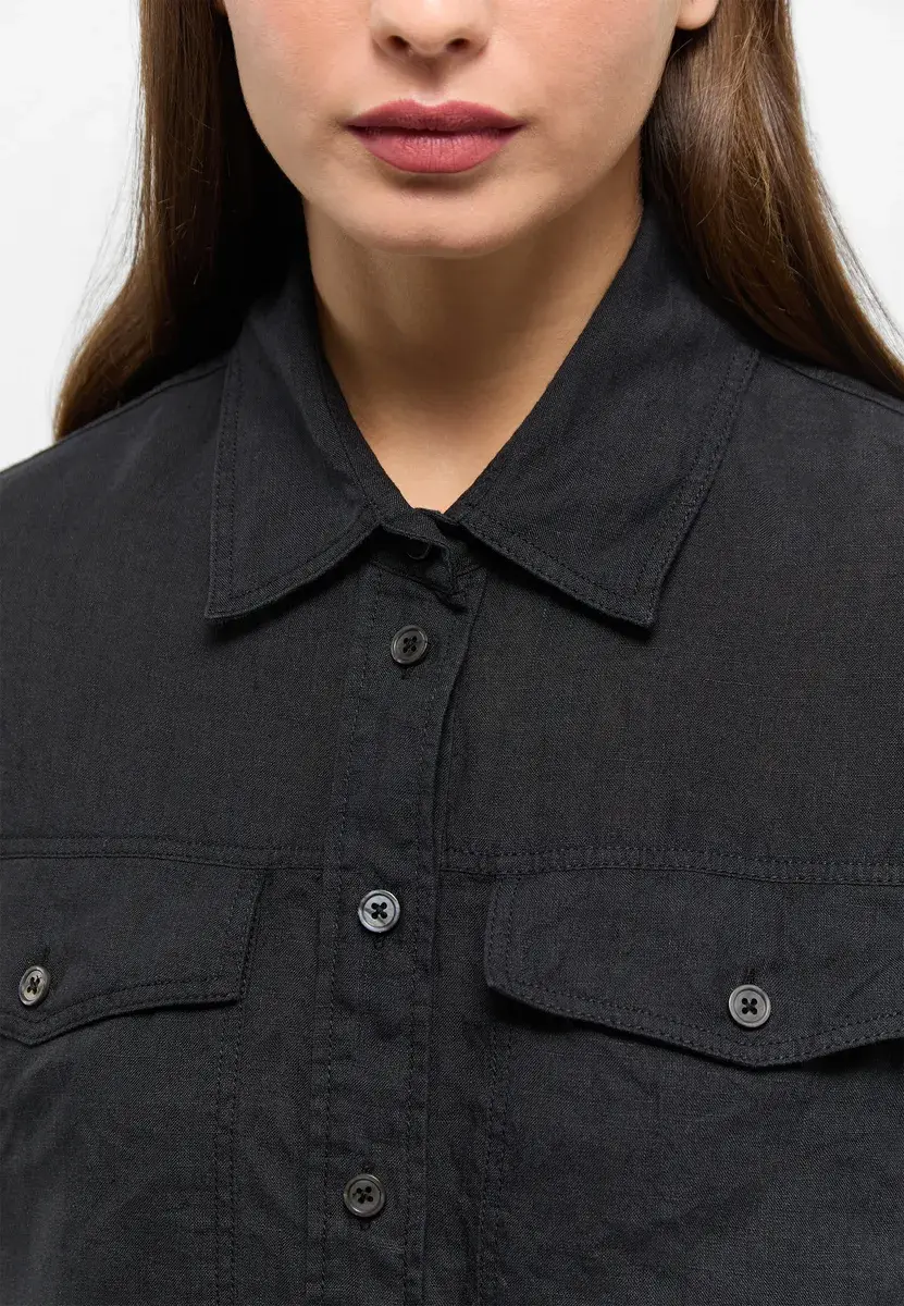 Для легкости повседневного летнего образа: льняная блузка-рубашка премиум-сегмента 1863 от ETERNA. Эта блузка просто необходима и впечатляет своим элегантным качеством, она изготовлена ​​из 100% льна. Структура специального, простого в уходе материала делает его дышащим, приятным для кожи, износостойким и охлаждающим летом. Поскольку лен элегантно мнётся, эта блузка повседневного кроя oversize станет идеальным спутником в сочетании с нашими льняными брюками. , это идеальный комплект для незамысловатого летнего образа. Воротник рубашки, два накладных нагрудных кармана с клапанами и длина спинки 72 см умело завершают образ. Рукава (длина 53 см) можно укоротить с помощью подката. Функция Up позволяет большему количеству воздуха достигать кожи в жаркие дни. Эта модель блузки настолько универсальна, что ее можно носить как блузку, так и как блузку-жакет поверх топа или футболки. Приобретите это чудо-комбинацию в нашем интернет-магазине уже сегодня.
