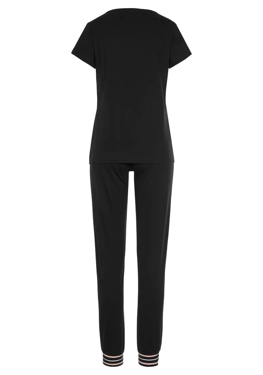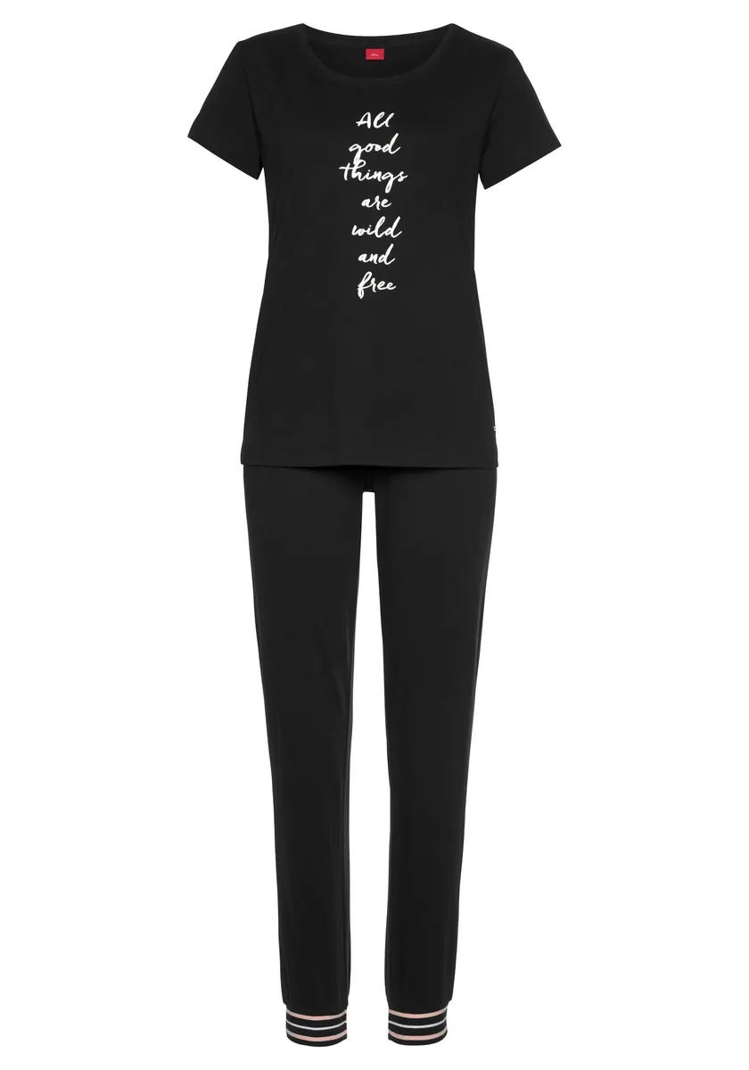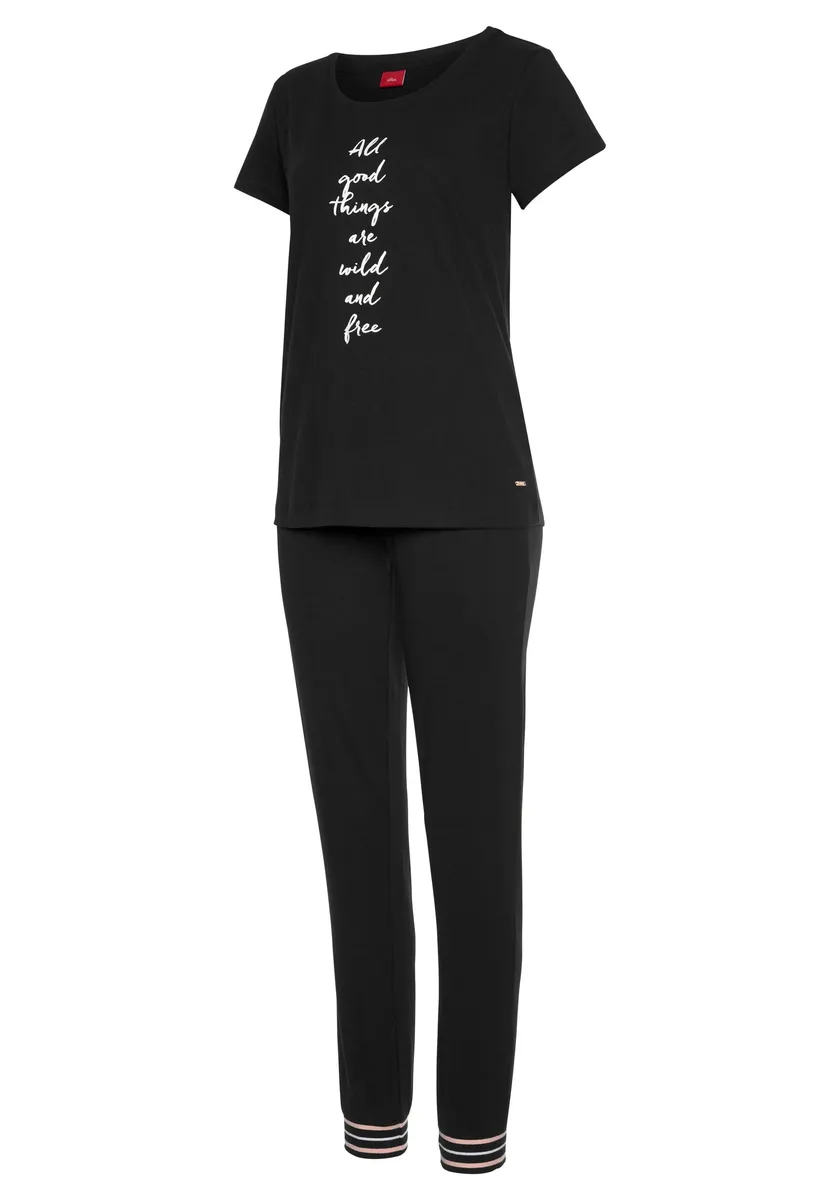 Пижама S.Oliver (2 шт.), с полосатыми манжетами в рубчик, черный