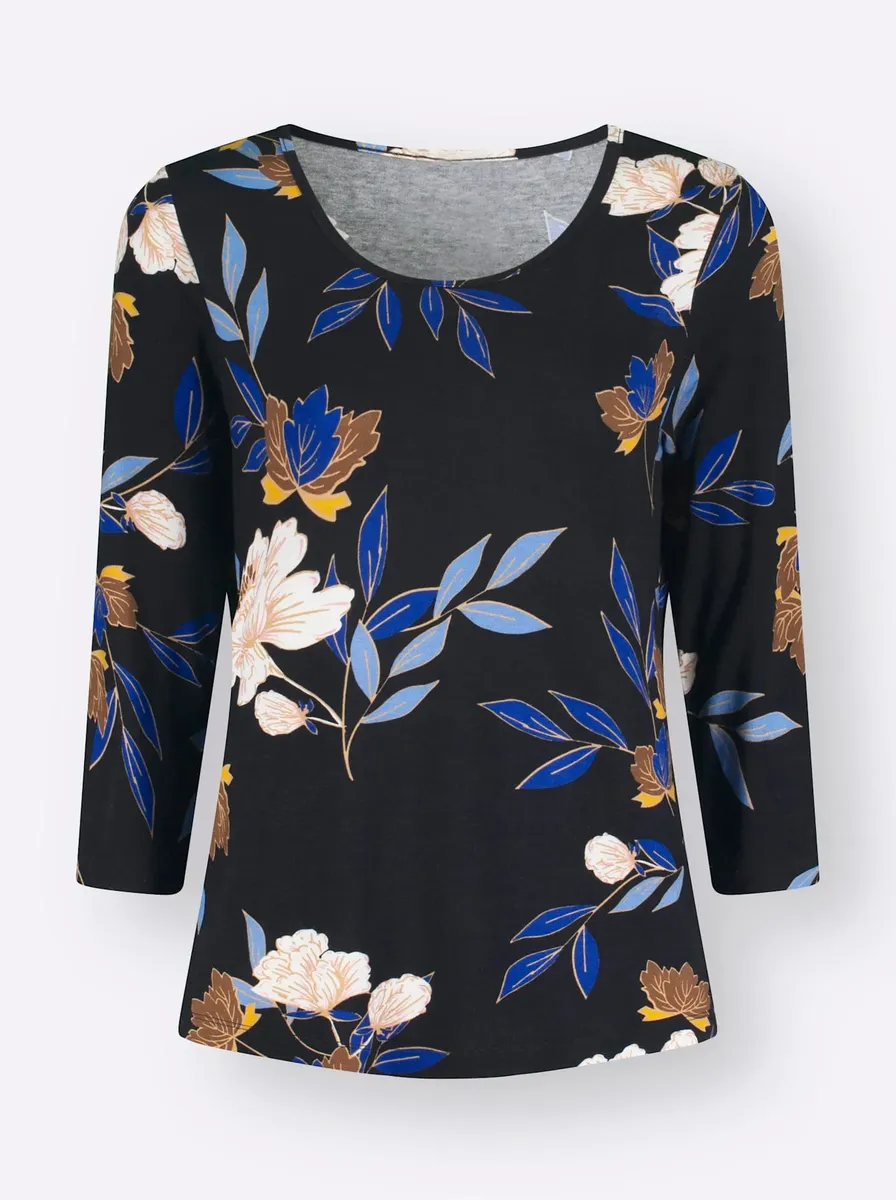 Красиво оформленная рубашка с принтом станет украшением любого гардероба. С рукавом 3/4. Замечательно мягкий! 95% вискоза, 5% эластан. Машинная стирка.