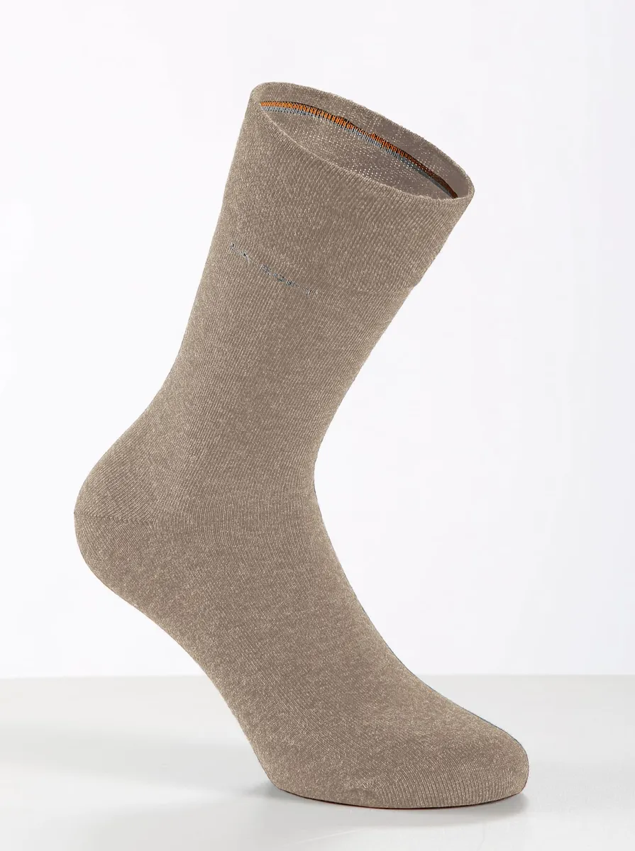 Для него и для нее: носки, сохраняющие форму, со специальным поясом Ca-Soft без разрезания резины. Усиления на пятке и соединенном вручную носке. 80% хлопок, 17% полиамид, 3% эластан.