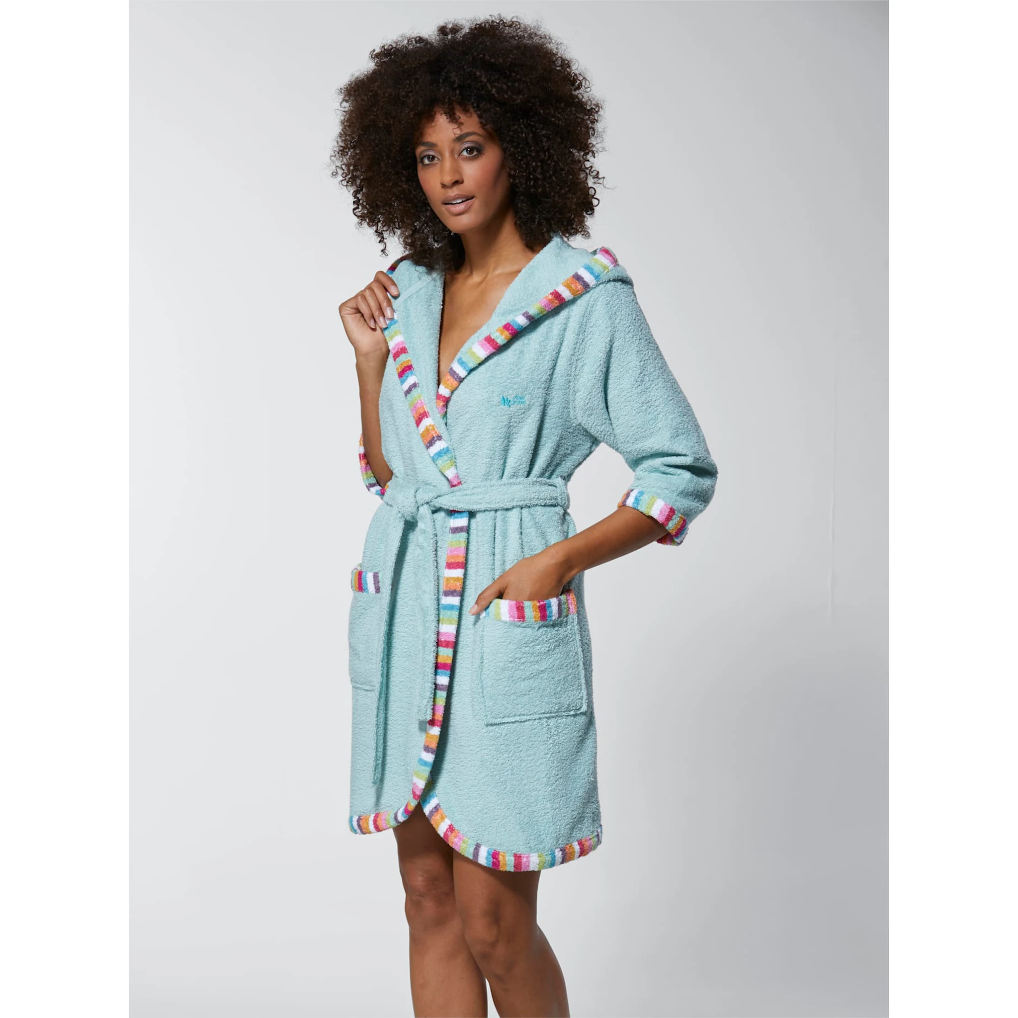 Халат классической формы кимоно с капюшоном и рукавами 3/4. Изготовлен из невероятно мягкой махровой ткани. С 2 накладными карманами, петлями для ремня и поясом-завязкой. Поддержите инициативу «Хлопок, сделанный в Африке». 100% хлопок.