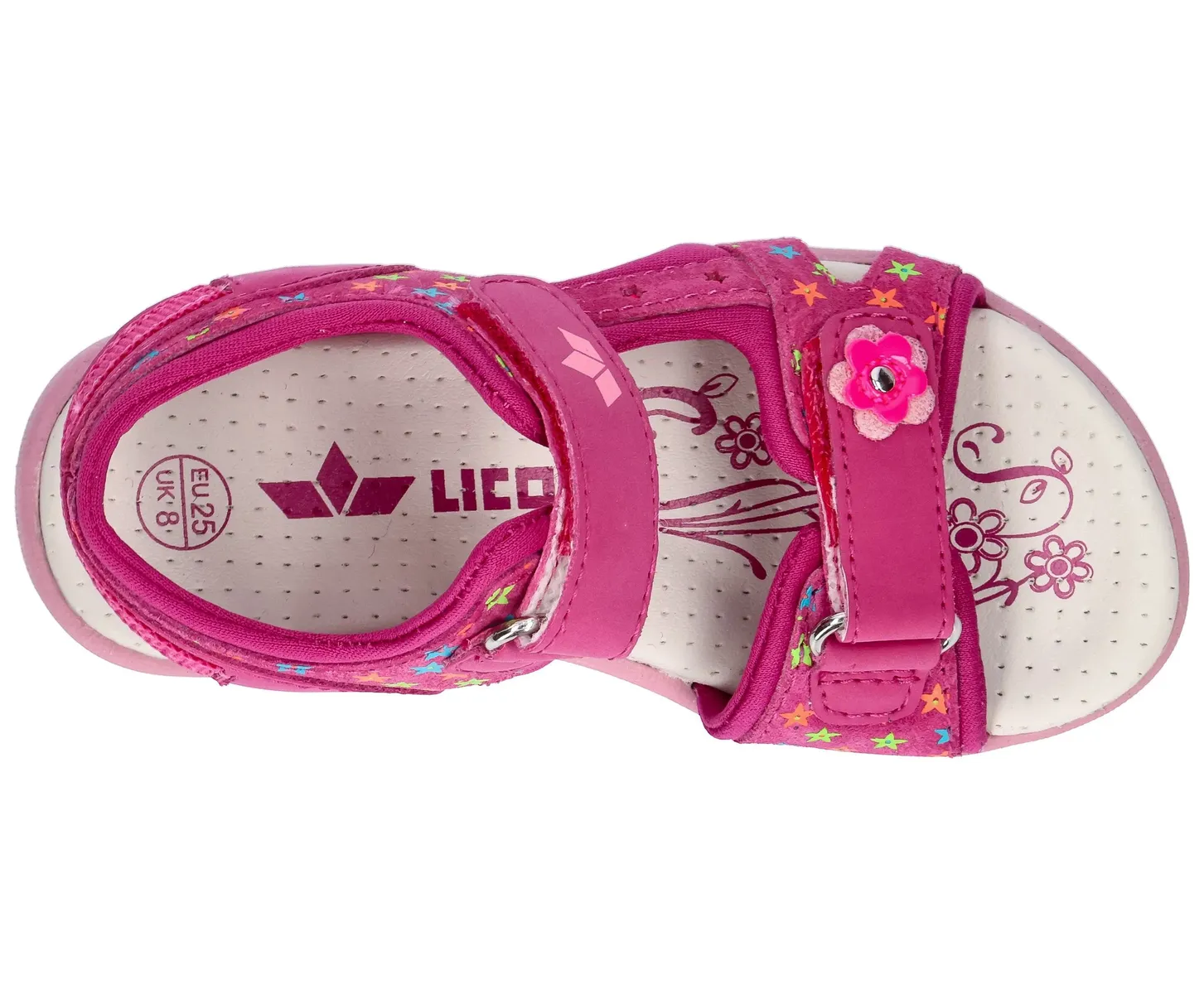 Красивые сандали Rinara V от Lico для детей. Материал верха - мягкая кожа, ремни-липучки, удобная текстильная подкладка и синтетическая стелька. Резиновая подошва нескользящая и гибкая.