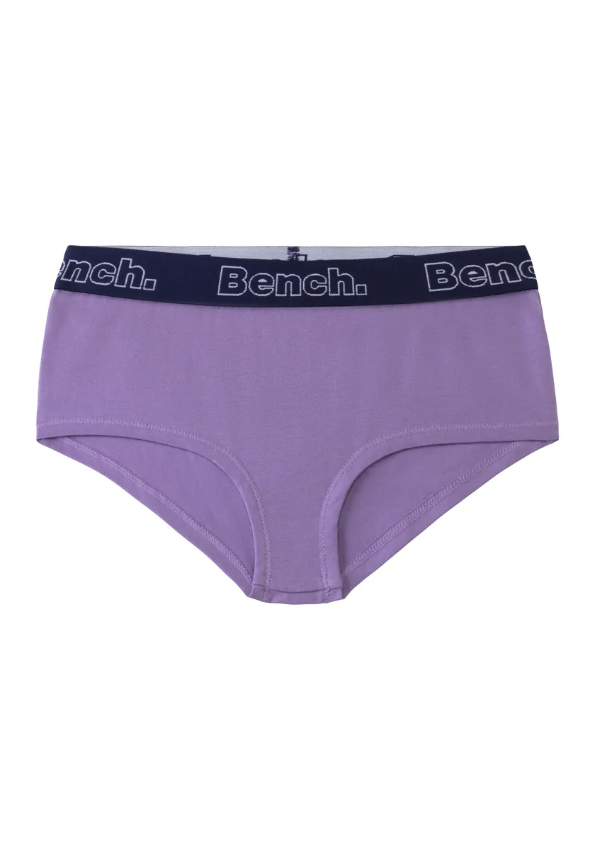 Красивые трусики для девочек в упаковке по 3 штуки от Bench. Мягкие тканые манжеты с надписью логотипа по периметру. Комфортно носить, так как изготовлено из эластичной хлопковой смеси. Соответствующие бюстье продаются отдельно.