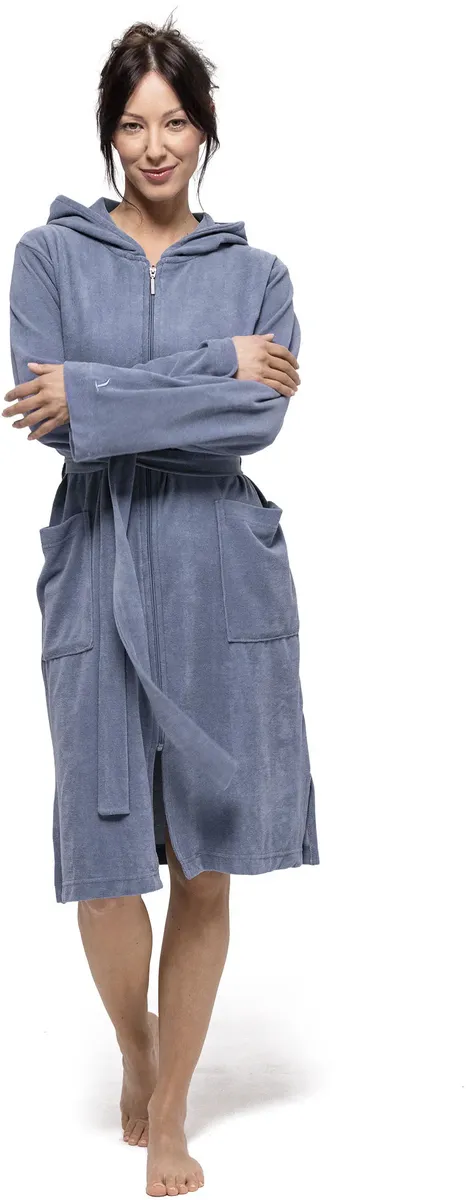 Как раз к началу теплого сезона это пальто с капюшоном длиной до колен в привлекательных цветах Coral, Steel Blue и Dark Grey пополнило коллекцию MOEVE HOMEWEAR. Оно изготовлено из тонкой пряжи, состоящей из 80 % хлопка и 20 % полиэстера, оно особенно легкое (240 г/м²), его можно складывать и хранить, экономя место. В то же время материал износостойкий, долговечный и приятный для кожи, что делает пальто идеальным спутником в повседневной жизни и в путешествиях. Практичная молния позволяет легко застегивать и открывать; Карманы, капюшон и пояс — дополнительные детали, создающие ощущение комфорта.