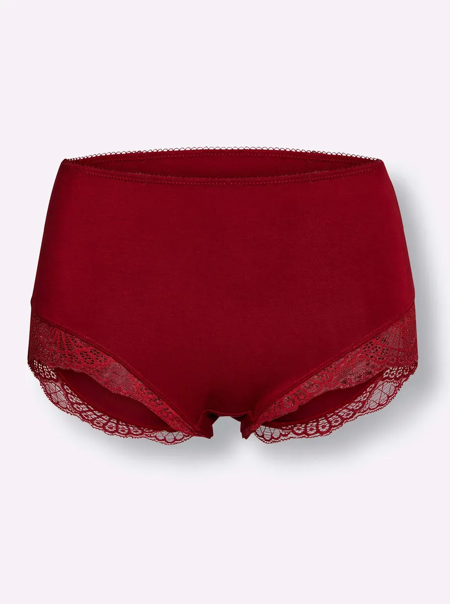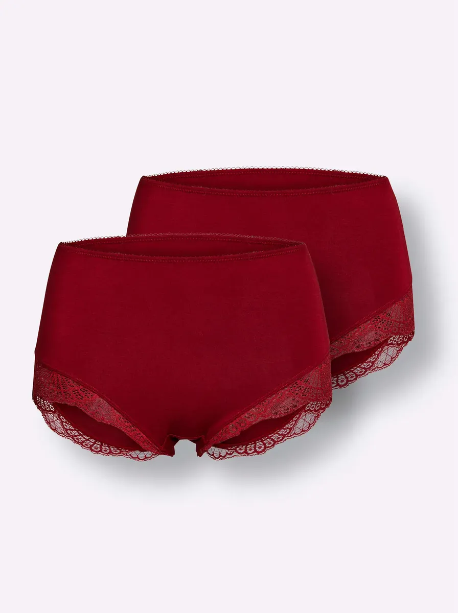 Хипстер в двойной упаковке от Washpur. Эластичный пояс украшен декоративной окантовкой в ​​виде зубчика мыши. Эластичные манжеты на штанинах декорированы кружевом. Двойная ластовица. 76% модал, 18% полиамид, 6% эластан.