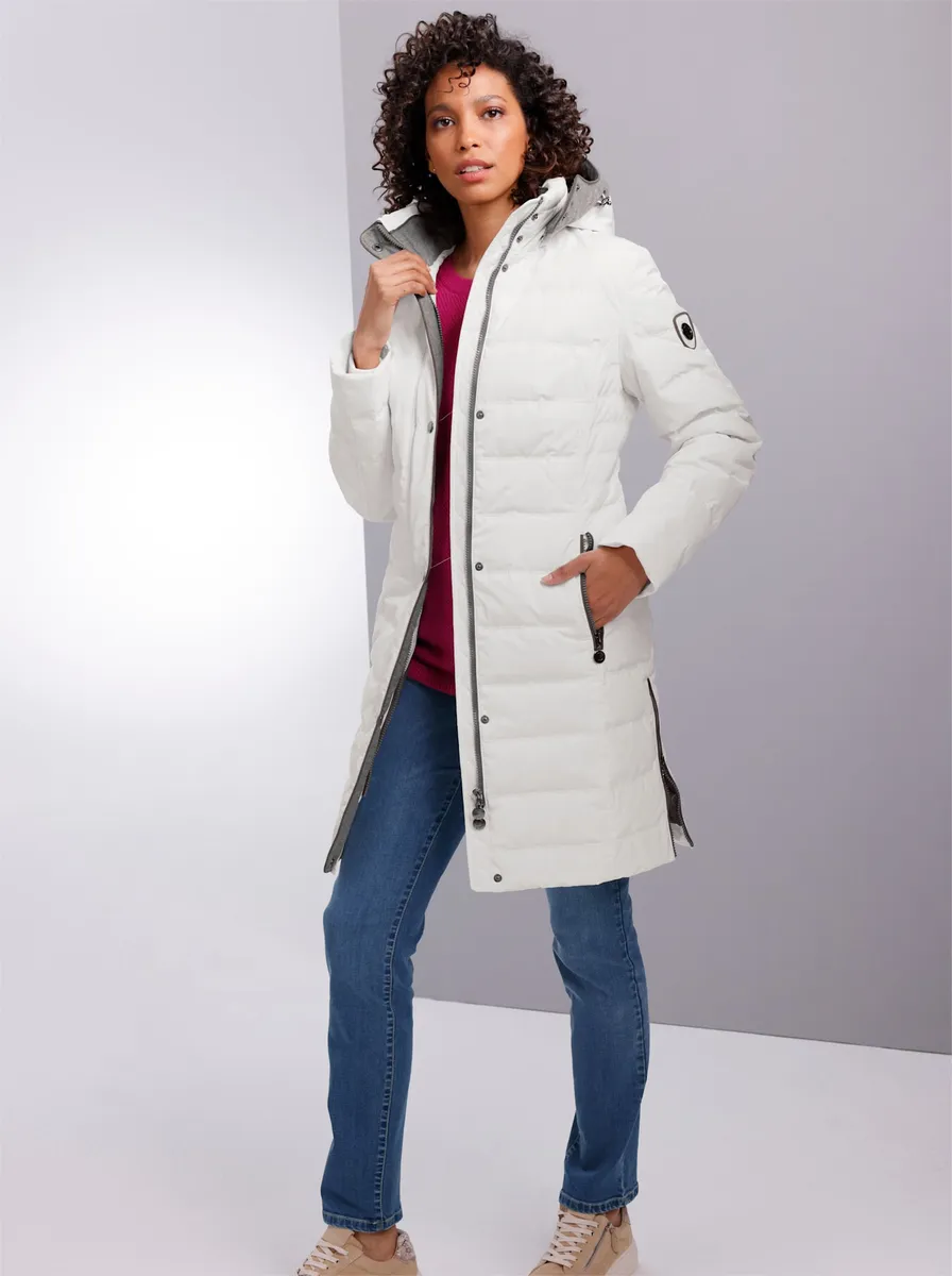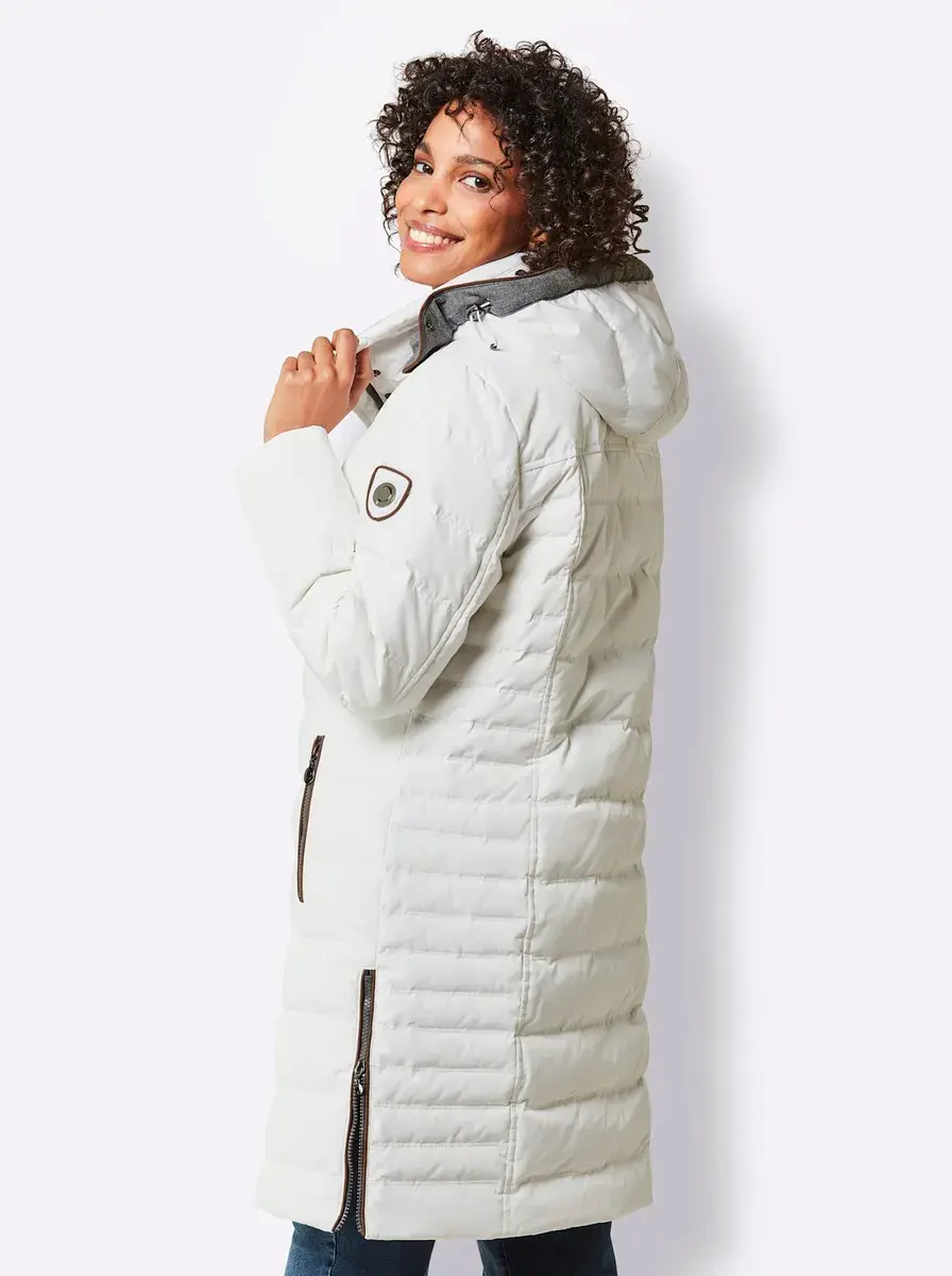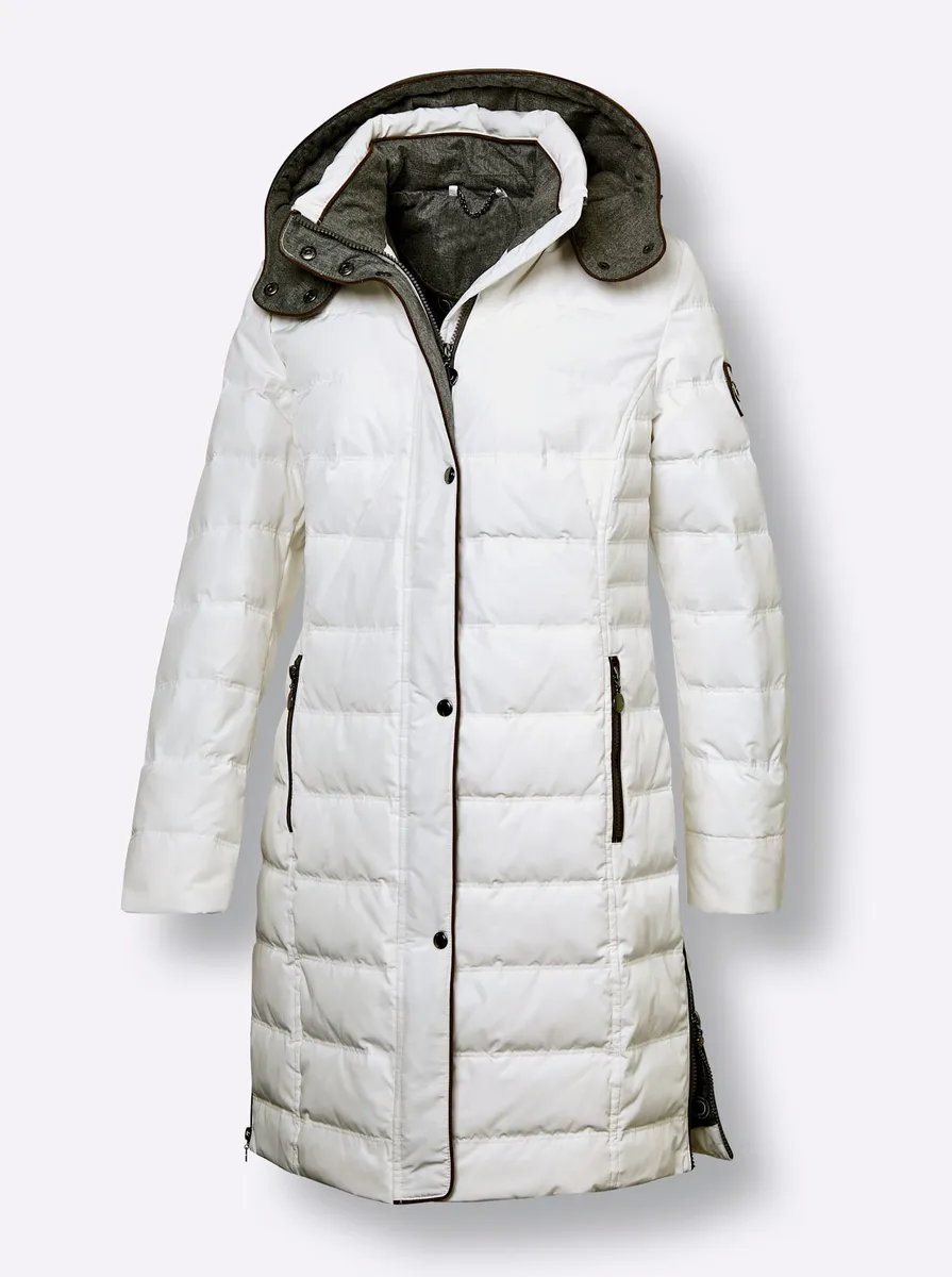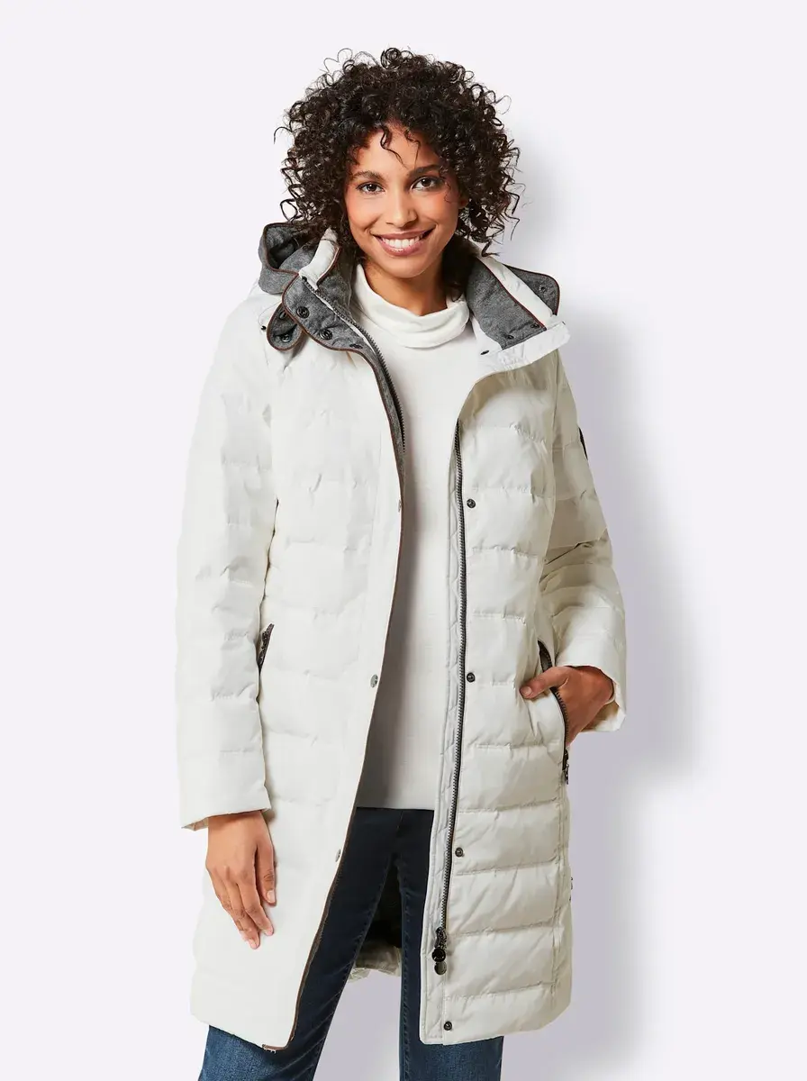 Какое уютное, теплое ощущение! Эксклюзивное пуховое стеганое пальто с отделкой из пушистой фланели. Капюшон регулируется по ширине, снимается на молнии. Двусторонняя молния, 2 кармана на молнии с внутренней флисовой подкладкой. Высокие боковые разрезы на молнии. 100% полиэстер. Подкладка: 100% полиэстер. Отделка: 100% полиэстер. Наполнитель: 90% пух, 10% перо. Машинная стирка.