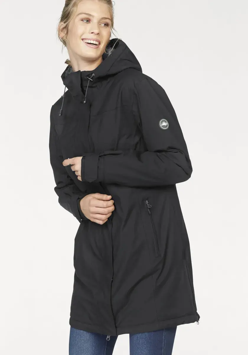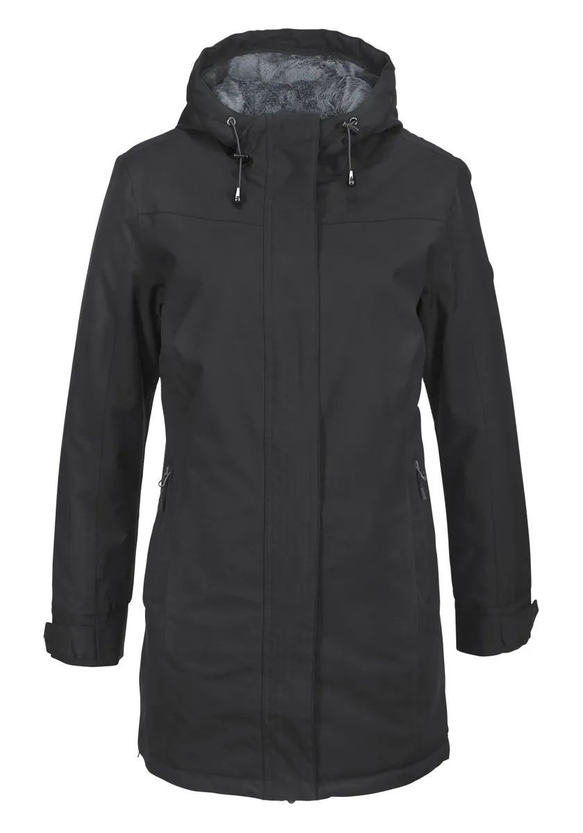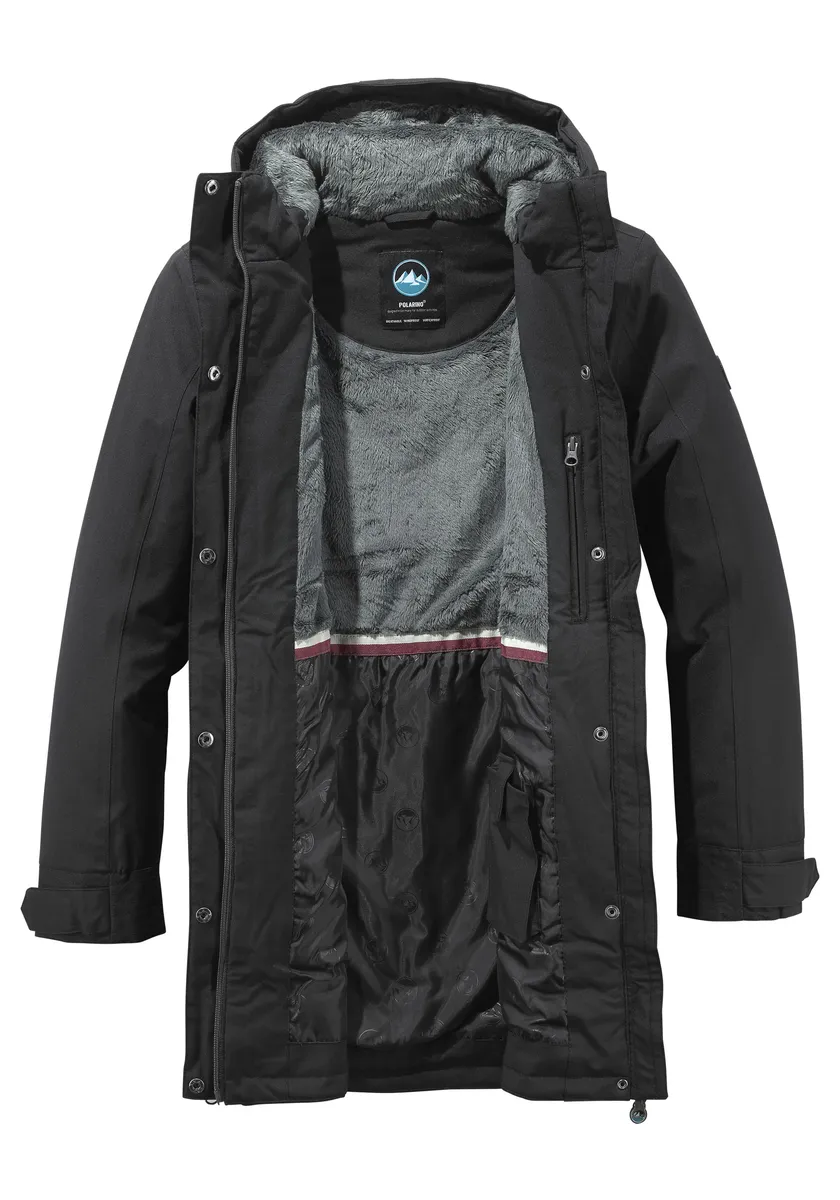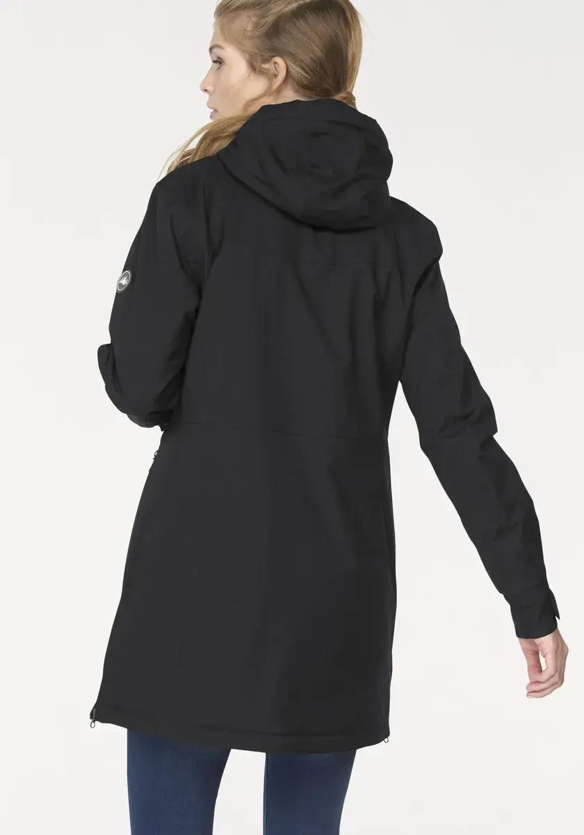 Капюшон и спинка отделаны мягким флисом и имеют теплую подкладку по всему периметру. Двусторонняя молния, карманы на молнии, внутренний карман для мобильного телефона, регулируемые по ширине манжеты. Дышащая, ветронепроницаемая и водонепроницаемая (водяной столб 8000 мм).