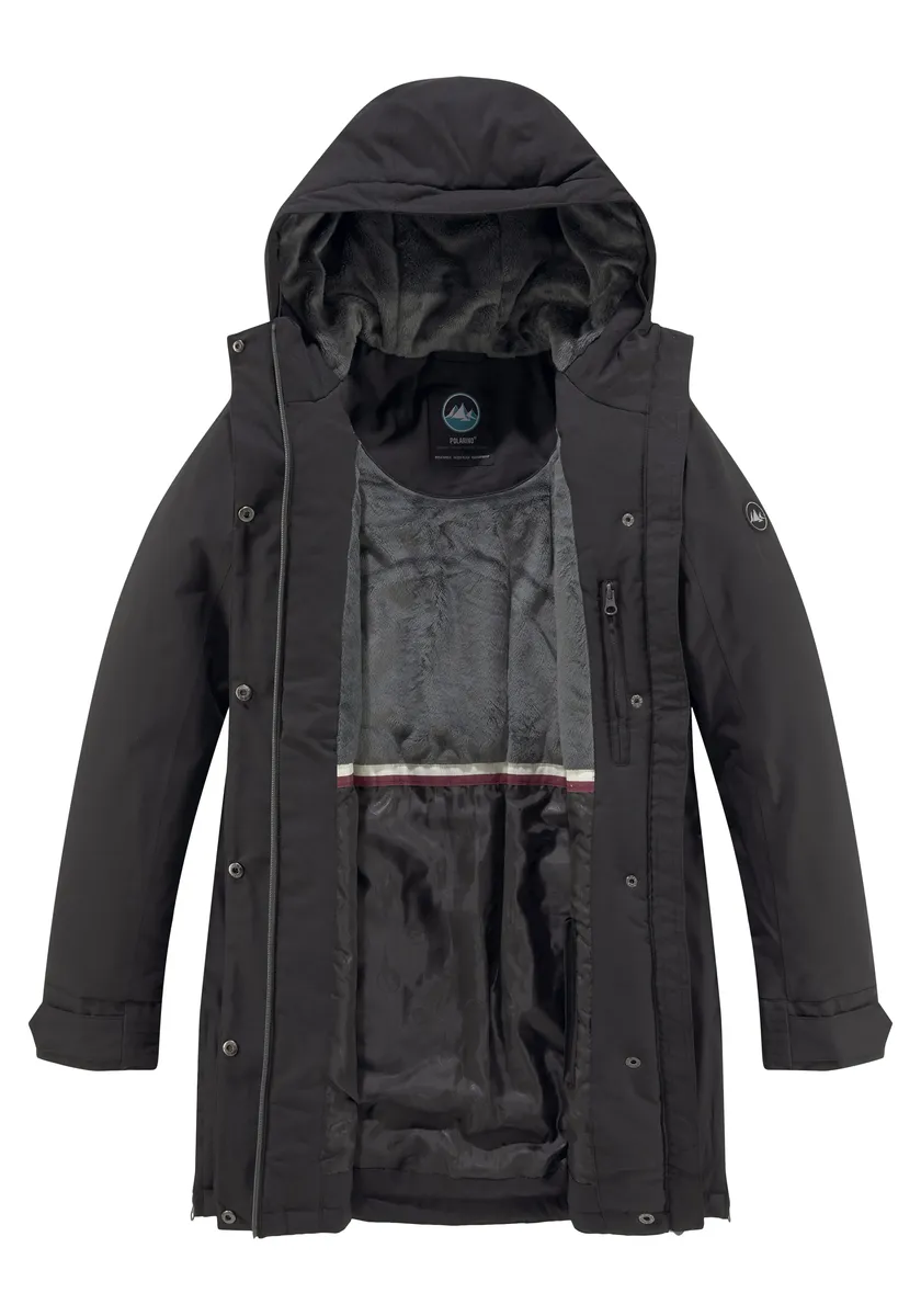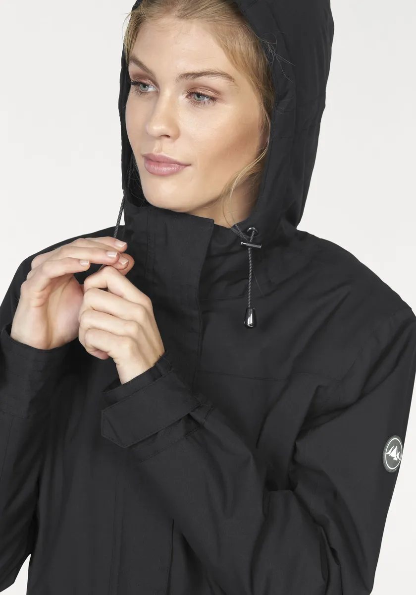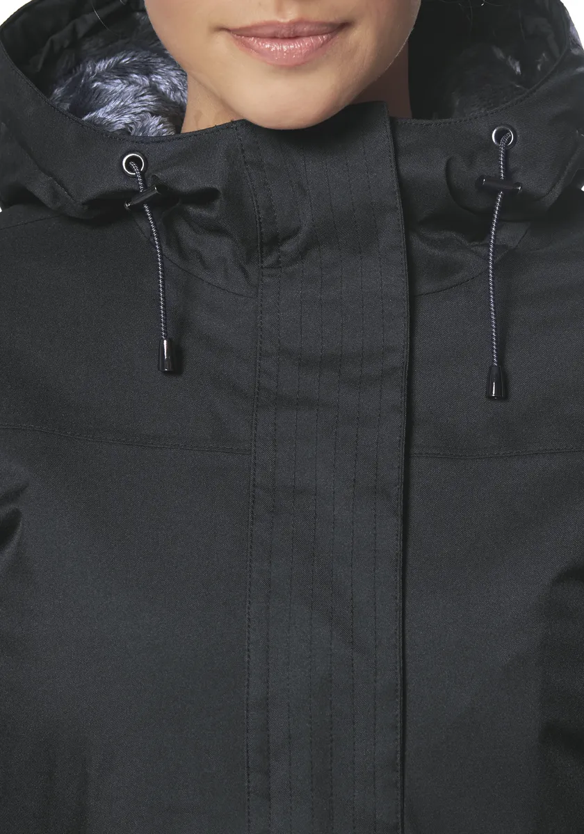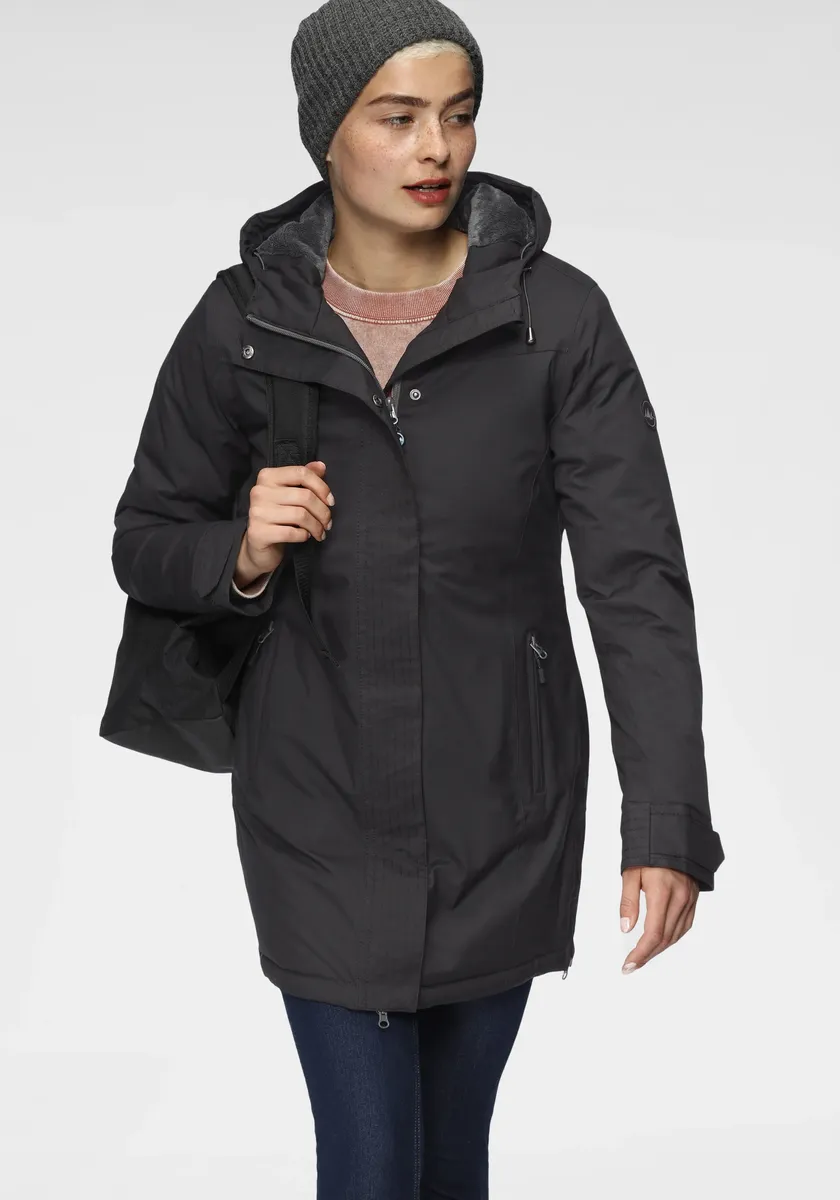 Капюшон и спинка отделаны мягким флисом и имеют теплую подкладку по всему периметру. Двусторонняя молния, карманы на молнии, внутренний карман для мобильного телефона, регулируемые по ширине манжеты. Дышащая, ветронепроницаемая и водонепроницаемая (водяной столб 8000 мм).