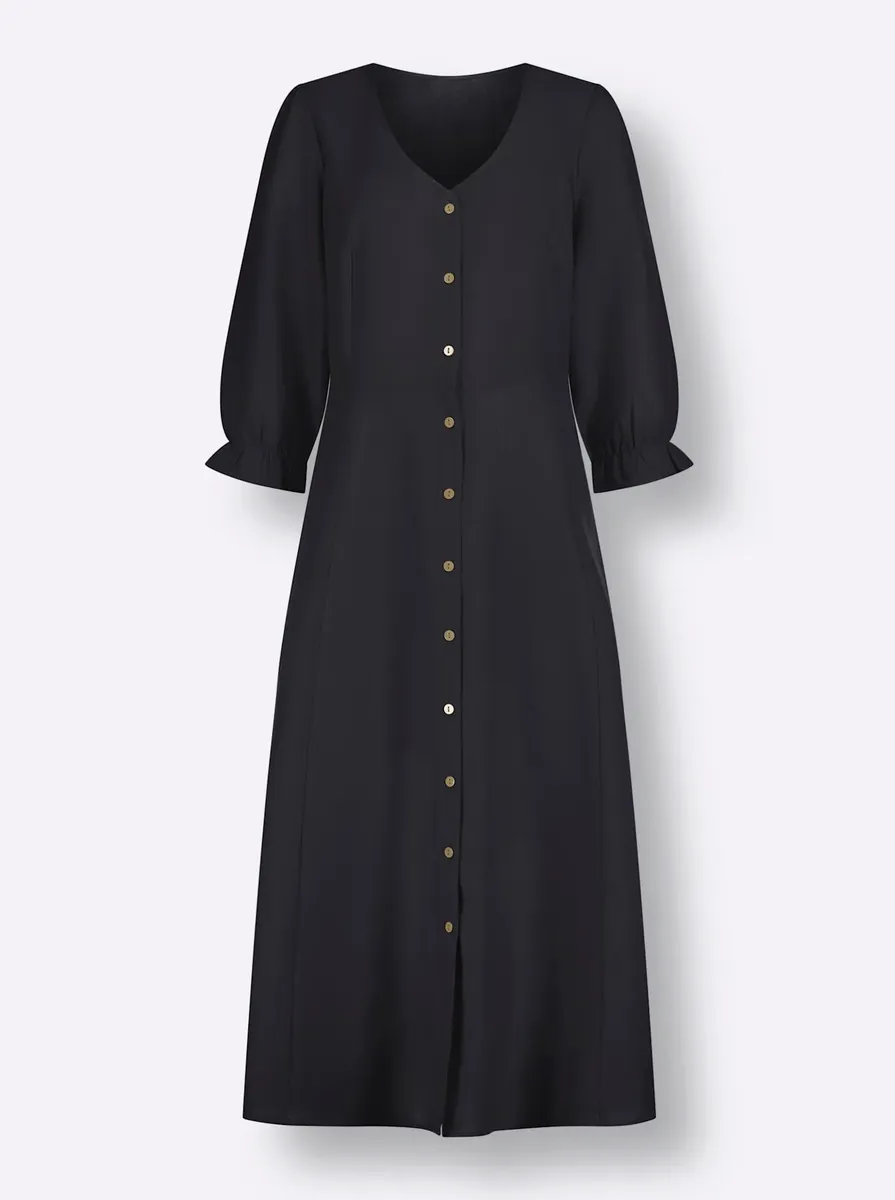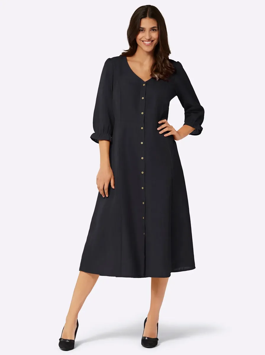 Для семейного торжества или фольклорного праздника – традиционное платье льняного цвета обязательно привлечет внимание! Визуально вытягивает V-образный вырез и формирует венские швы. Тонкие рукава-буфы длиной 3/4 с эластичными манжетами с оборками. Складки на талии придают юбке привлекательный вид. Благодаря непрерывной планке с пуговицами вы можете решить, какую часть ног вы хотите показать. 100% полиэстер. Машинная стирка.
