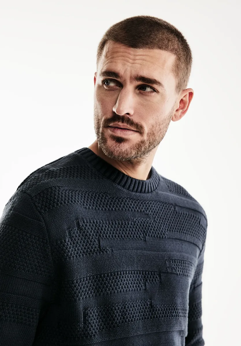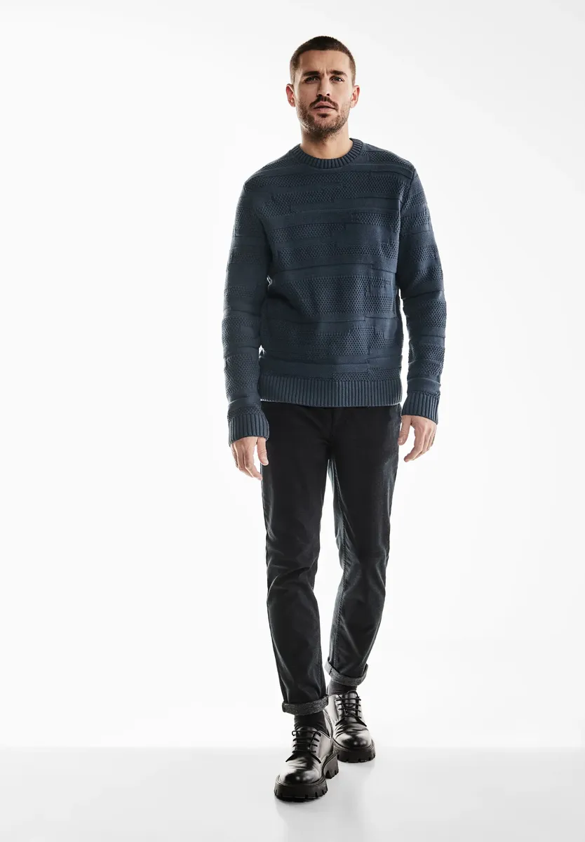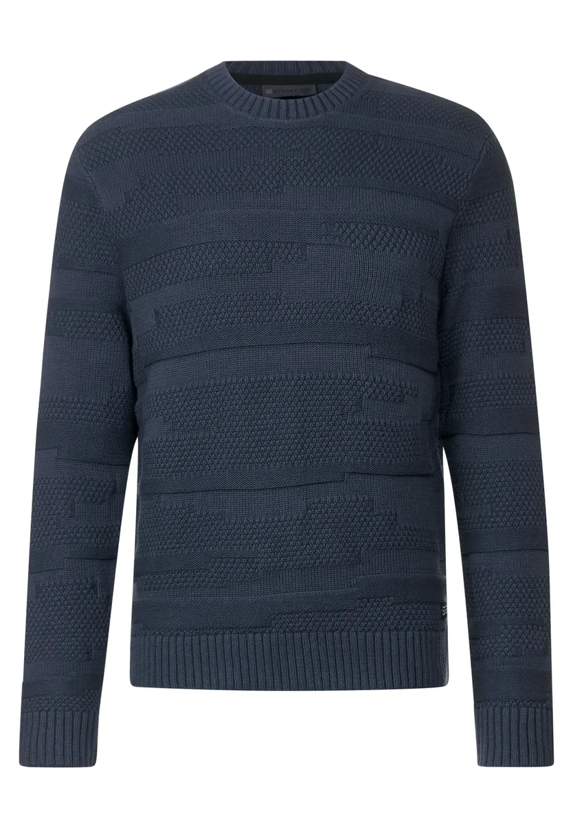 STREET ONE MEN Вязаный свитер со структурой, синий
