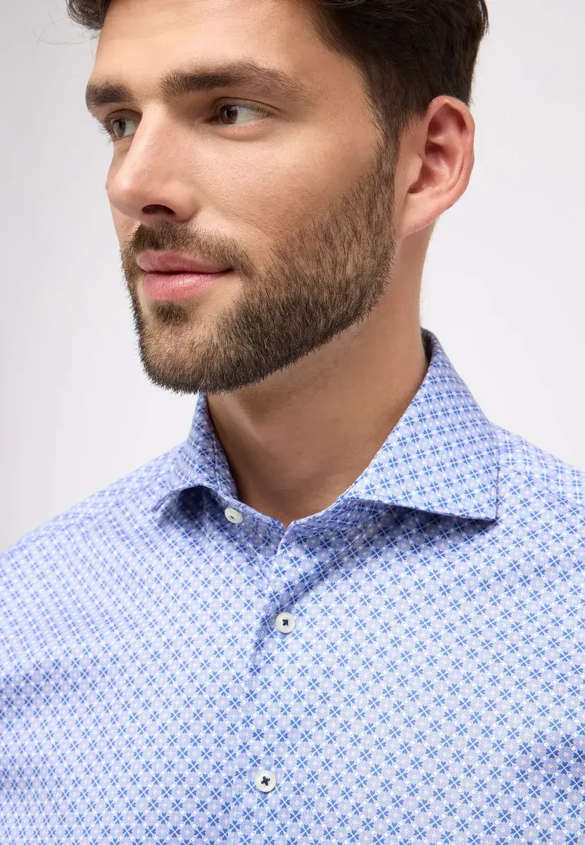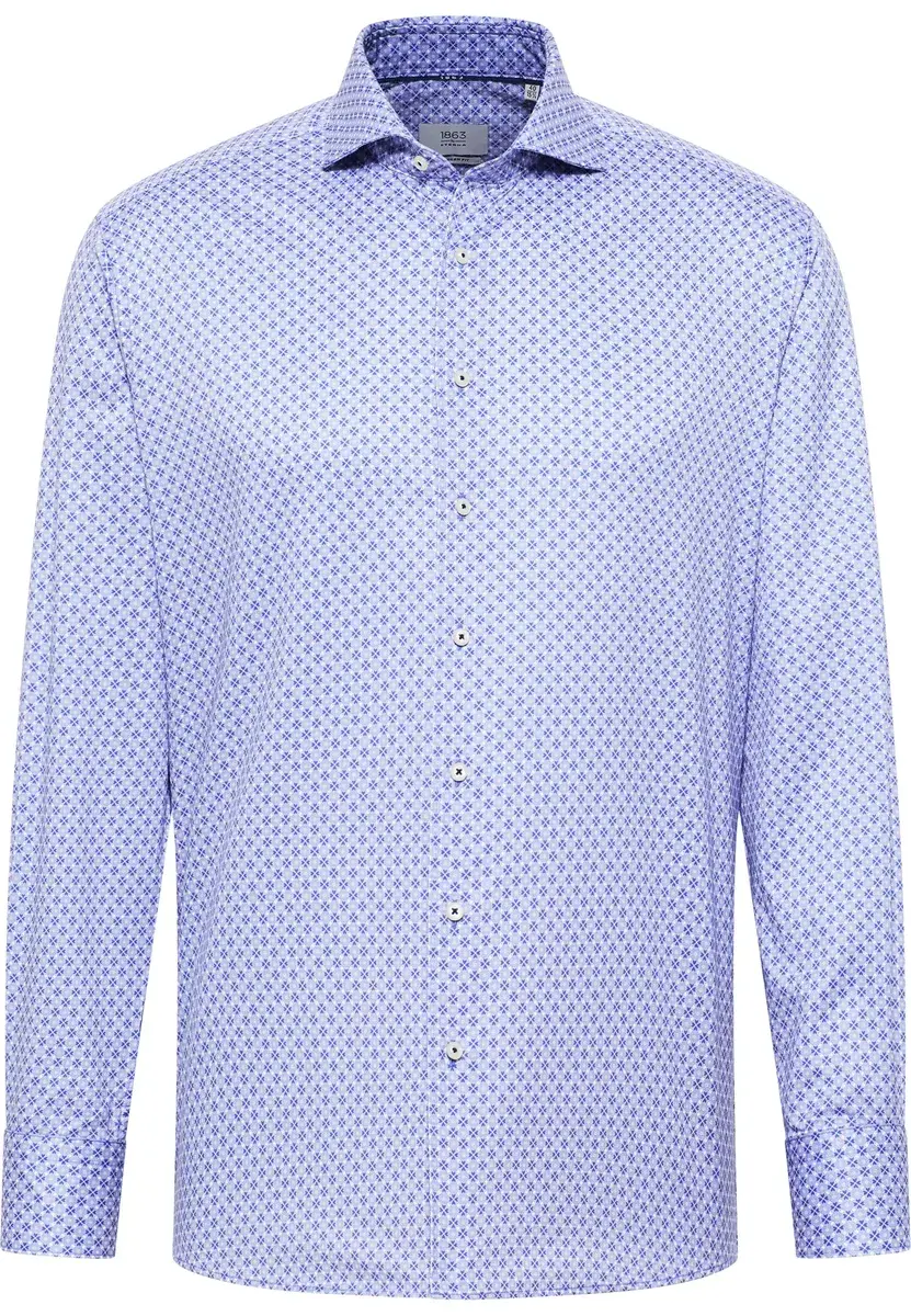 Для тех, кто любит модные рубашки, мы предлагаем рубашку с длинными рукавами, которая элегантно и модно дополнит ваш образ. Она изготовлена ​​из легко гладящегося нескользящего твила (100% хлопок) и обеспечивает удобную посадку в течение всего дня. Слегка согревающий характер и изысканный мерцающий вид — дополнительные свойства, приписываемые сарже. Эта рубашка MODERN FIT из нашей премиальной линии 1863 от ETERNA впечатляет непринужденным принтом по всей поверхности, модным кроем и модным воротником-акулой. Закажите сегодня, не выходя из дома, и убедитесь сами в безупречном качестве и мастерстве нашей продукции.