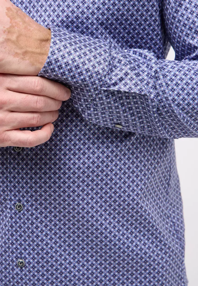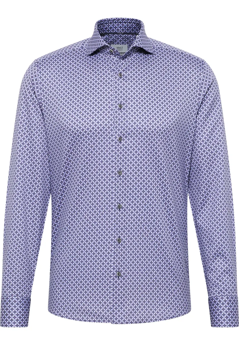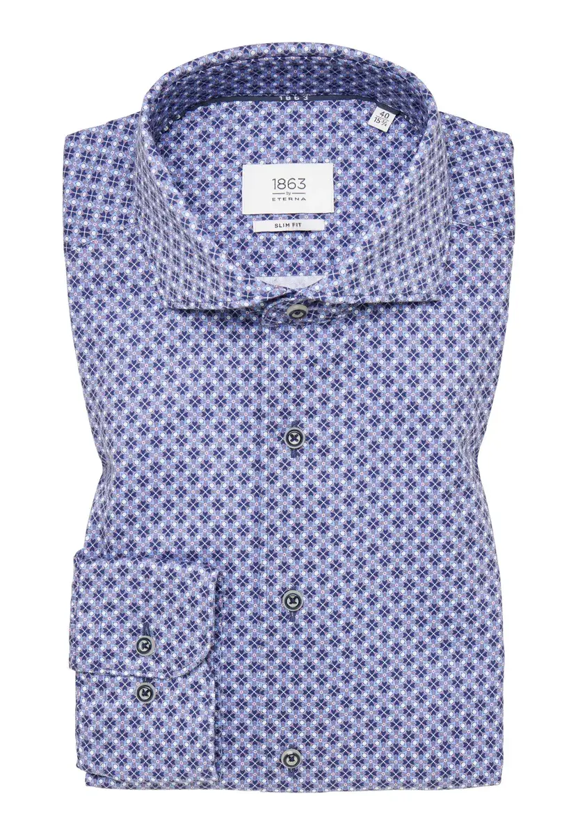 Для тех, кто любит модные рубашки, мы предлагаем рубашку с длинными рукавами, которая элегантно и модно дополнит ваш образ. Она изготовлена ​​из легко гладящегося нескользящего твила (100% хлопок) и обеспечивает удобную посадку в течение всего дня. Слегка согревающий характер и изысканный мерцающий вид — дополнительные свойства, которые приписывают сарже. Эта рубашка SLIM FIT из нашей премиальной линии 1863 от ETERNA впечатляет своим повседневным принтом по всей поверхности, облегающим фигуру кроем и модным воротником-акулой. Закажите сегодня, не выходя из дома, и убедитесь сами в безупречном качестве и мастерстве нашей продукции.