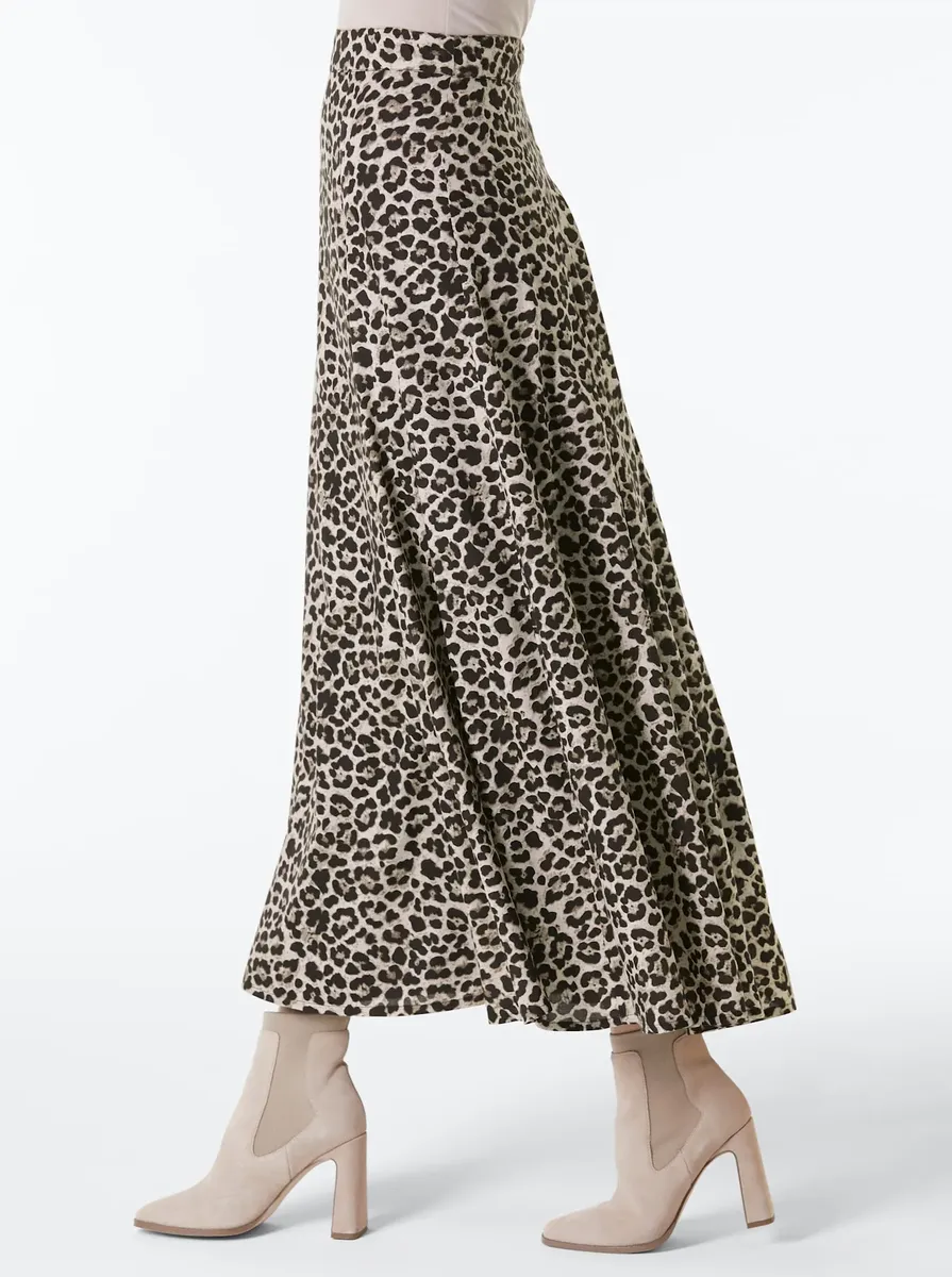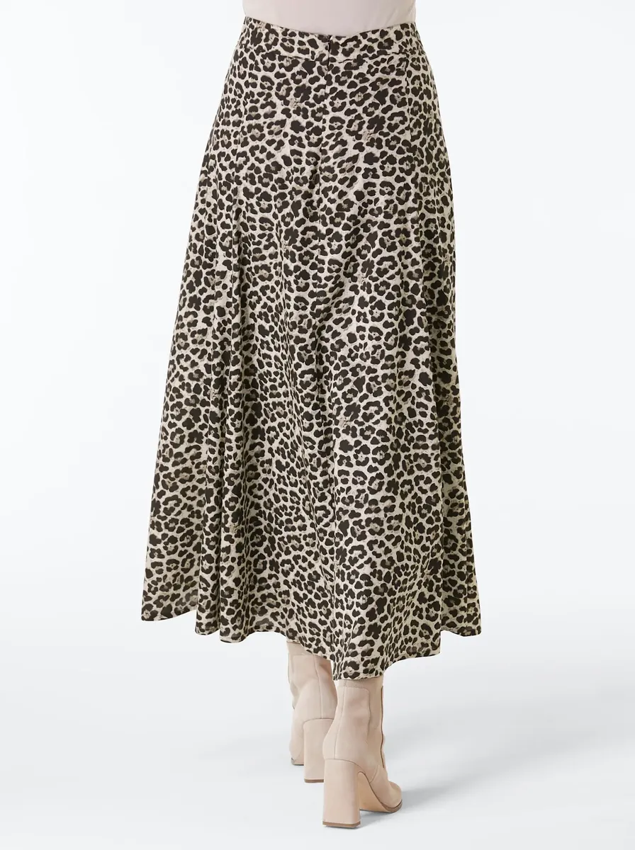 Ваша схема добычи? Эксклюзивный леопардовый дизайн прекрасно сочетается с плавно струящейся, широкой юбкой со вставками из матового блестящего модала. Пояс фигурной формы с мелкошовной молнией и внутренней эластичной застежкой на пуговицы сзади. Полностью на подкладке. 100% модальный. Подкладка: 100% вискоза. Машинная стирка.