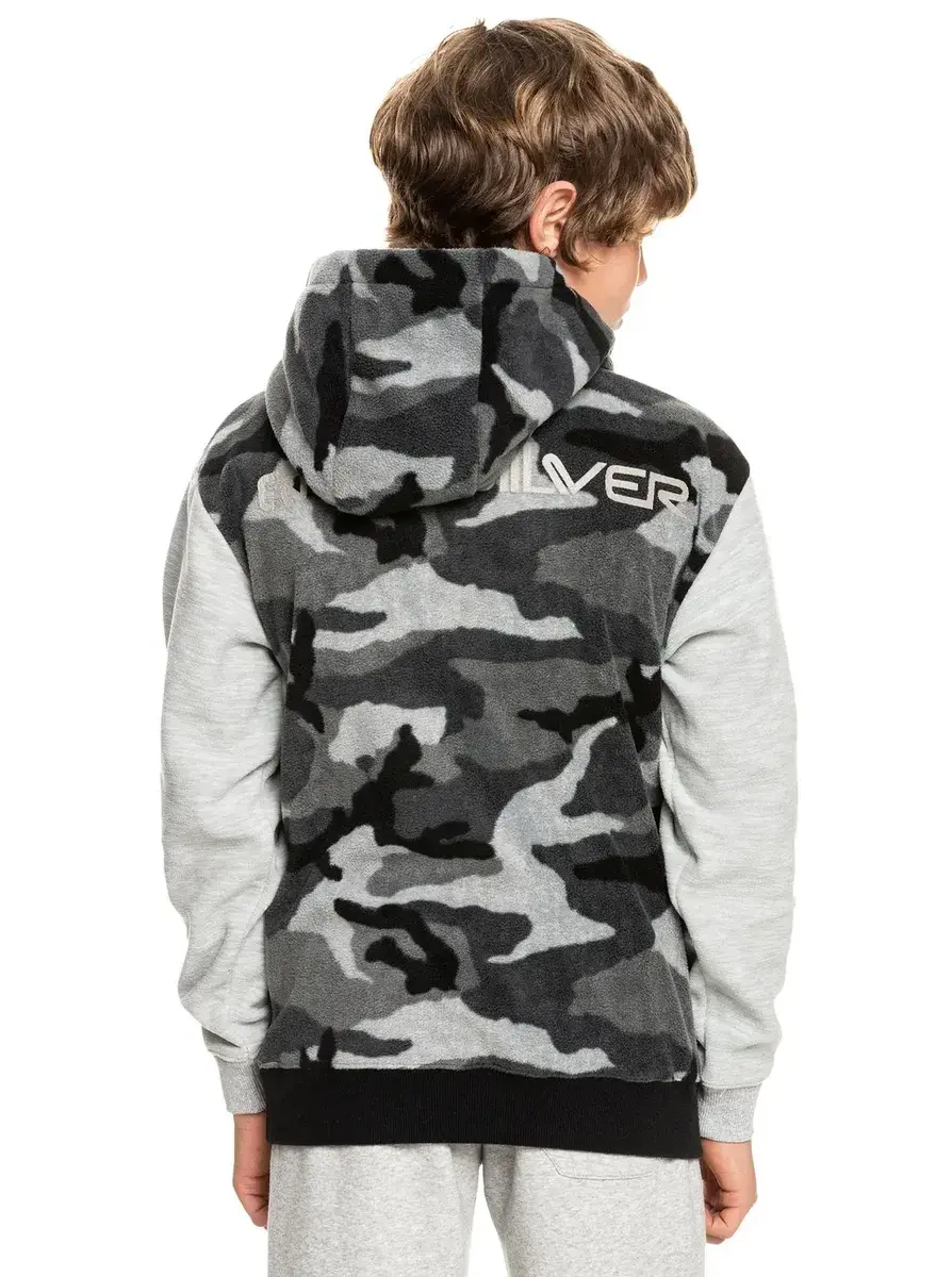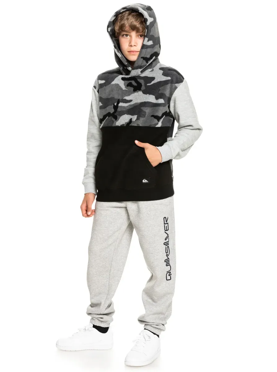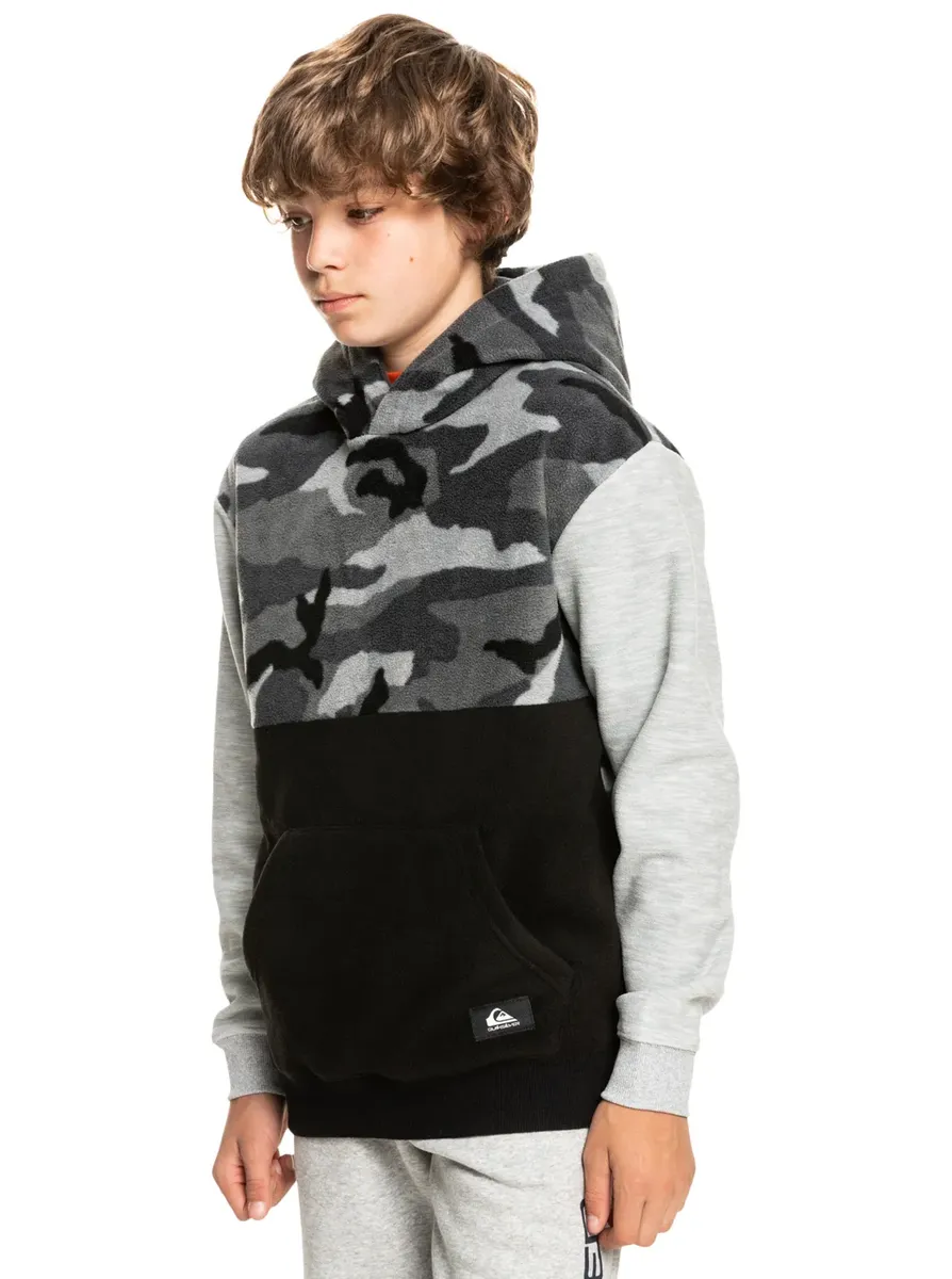 Худи для мальчиков. Особенности этого продукта: Вторичный материал: флисовая ткань из переработанного полиэстера [250 г/м2], классический удобный стандартный крой, карман-кенгуру и фирменный принт Quiksilver на спине. Основы — толстовка для мальчиков.