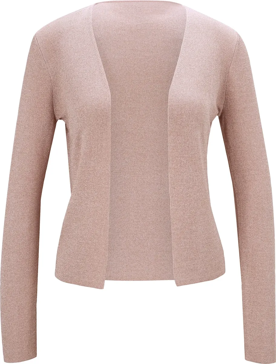 Кардиган. Элегантная базовая модель без застежки с легким блеском. Облегает фигуру, с длинными рукавами. 80% вискоза, 20% полиэстер. Машинная стирка.