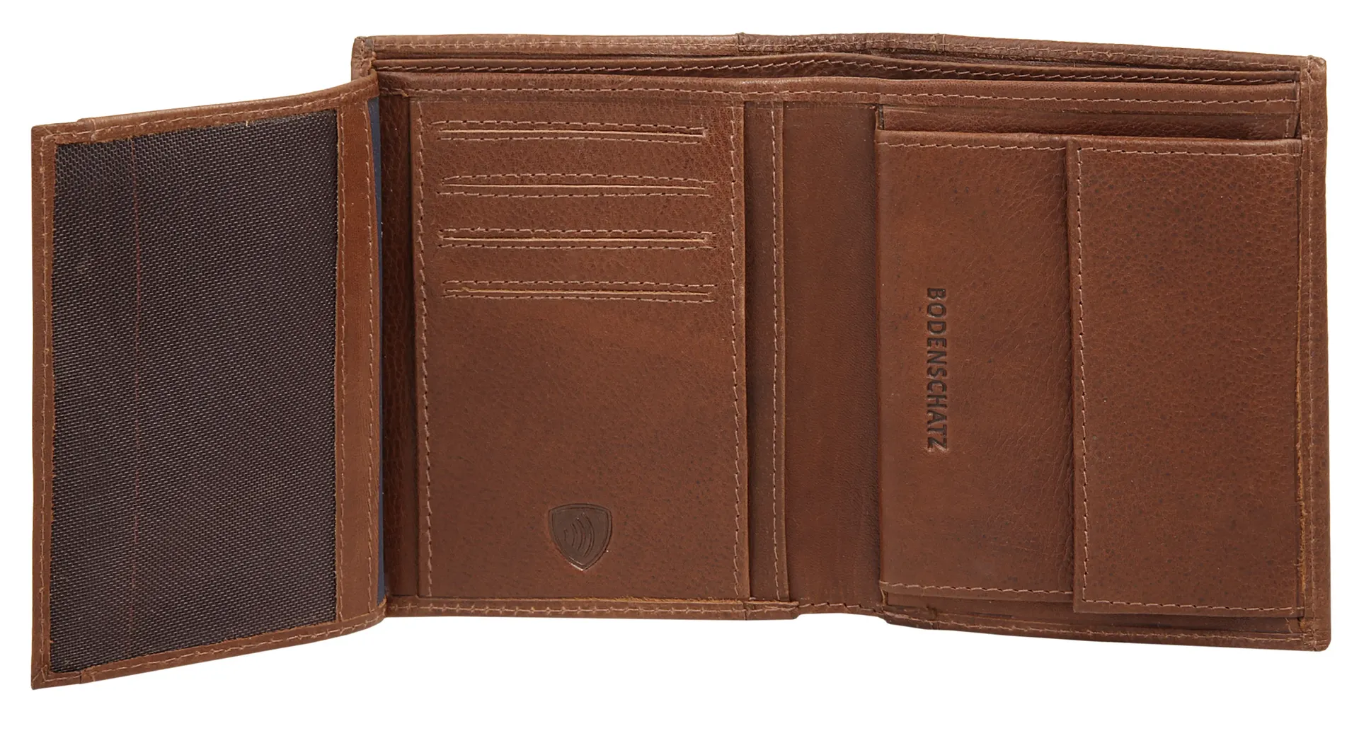 Ваши банковские карты в особой безопасности в повседневном кожаном кошельке Bodenschatz! Встроенная RFID-защита гарантирует это. Это защитит ваши банковские реквизиты от нежелательного доступа посредством сканирования! Расположение отсеков четкое, формат компактный и плоский. * 100% натуральная кожа* 2 отделения для купюр* 1 отделение для монет с застежкой-кнопкой* 5 отделений для карт* 4 прорезных кармана* 2 видимых отделения* с RFID-защитой от несанкционированного использования данных при сканированииОсобенности: натуральная кожаДополнение к названию: натуральная кожаШирина: 13 смВес: 100Высота: 10 смГлубина: 2 смКоличество карманов Внутри: 4 Количество отделений для карт: 5 Количество отделений для купюр: 2 Количество видимых отделений: 2 Внешний материал: 100% воловья кожа Размер: один размер Основная застежка: Без застежки Цвет внутри: синий Внутри материал: ткань Внутренний вид: контрастный цвет Вес: 0,1 кг Монетное отделение: есть (кнопка) Вид Поверхность: винтаж Объем: 0,1 Формат: альбомный