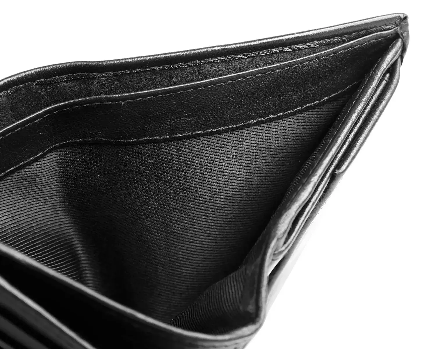 2 отделения для купюр, 9 отделений для карт, 6 отделений для слотов и 1 отделение для монет с кнопкой.