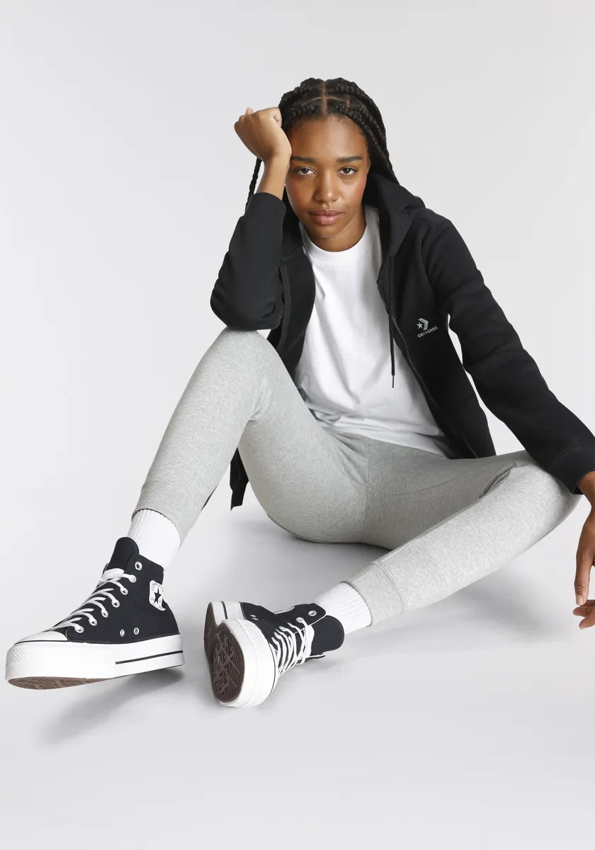 Кроссовки Converse идеальны, когда требуется спортивный образ для отдыха. Обувь имеет низкий голенище и шнуровку. Это означает, что его ширину можно регулировать и адаптировать под ногу. Слегка профилированная подошва обеспечивает немного более безопасный шаг. За текстильным верхом легко ухаживать, он почти не чувствителен к загрязнениям и легок. Если носить его с платьем или юбкой, он создаст стильный переломный момент. Повседневная кожаная куртка дополнит образ.