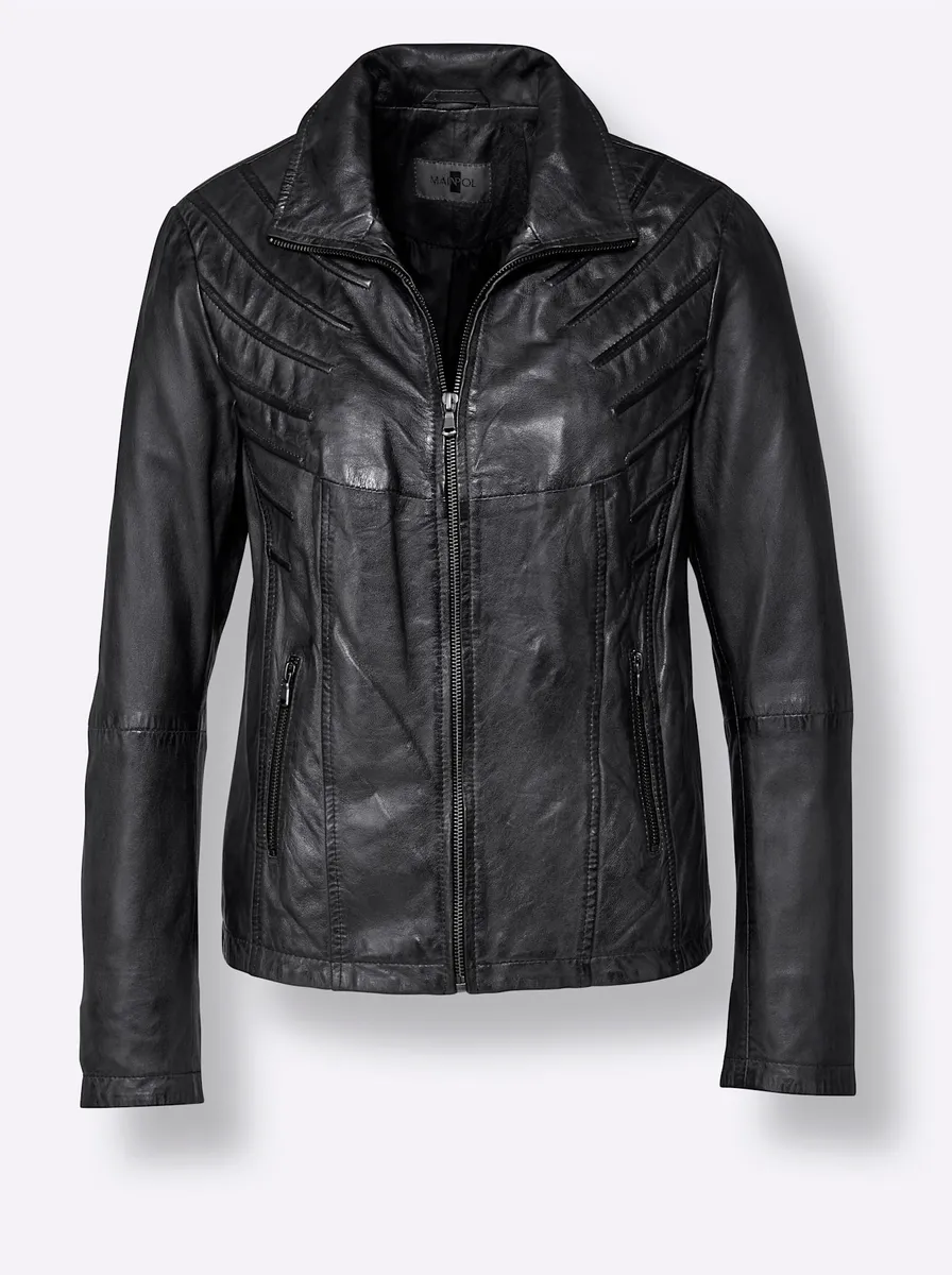 Качественная кожаная куртка из мягкой ягненка наппа с яркой декоративной стежкой спереди – она просто необходима! Детали: воротник-стойка, молния во всю длину, 2 кармана на молнии, типовые разделительные швы, 1 внутренний карман на молнии. Манжеты с декоративными швами и разрезом. 100% наппа ягненка. Подкладка: 100% полиэстер. Специальная чистка кожи.