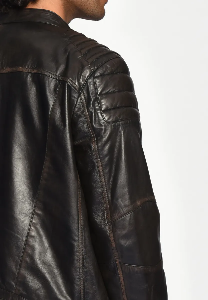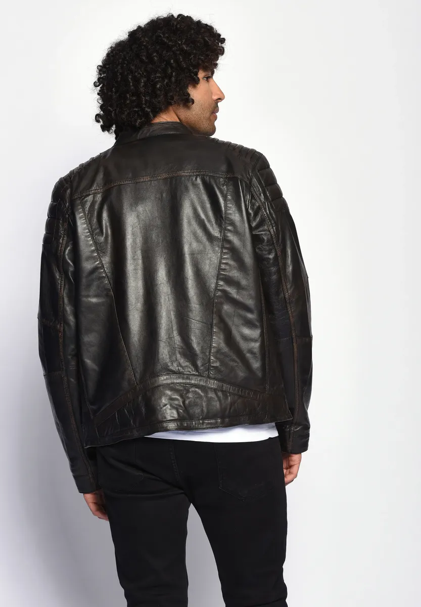 Качественная кожаная куртка от Мустанга в байкерском стиле из мягкой овчины на молнии. Плечи имеют модную набивку и стеганые швы. Короткий воротник-стойка подчеркивает повседневный байкерский образ.Базовый вариант: НетПодкладка: легкая подкладкаПол: мужскойРазмерный ряд: американские размерыФильм куртки: кожаная курткаКоллекция: Весна / Лето 16Воротник/вырез: воротник-стойкаМатериал: кожаМатериал подкладки: хлопокМатериал внешней ткани: гладкий кожаМатериал подкладки рукавов: полиэстерСвойства материала: кожаСостав материала: Внешний материал: 100% ягненок, кожа / Внутренняя подкладка: 100% хлопок / Подкладка рукавов: 100% полиэстерПосадка: Обычная посадкаТип/стиль изделия: КурткаПокрой: ПрямойСпециальные размеры Уровень продукта: не указаноСтиль: курткаЗастежка Тип: молния. Детали рукава: не указаны. Длина по спинке: ок. 69 см по размеру. М