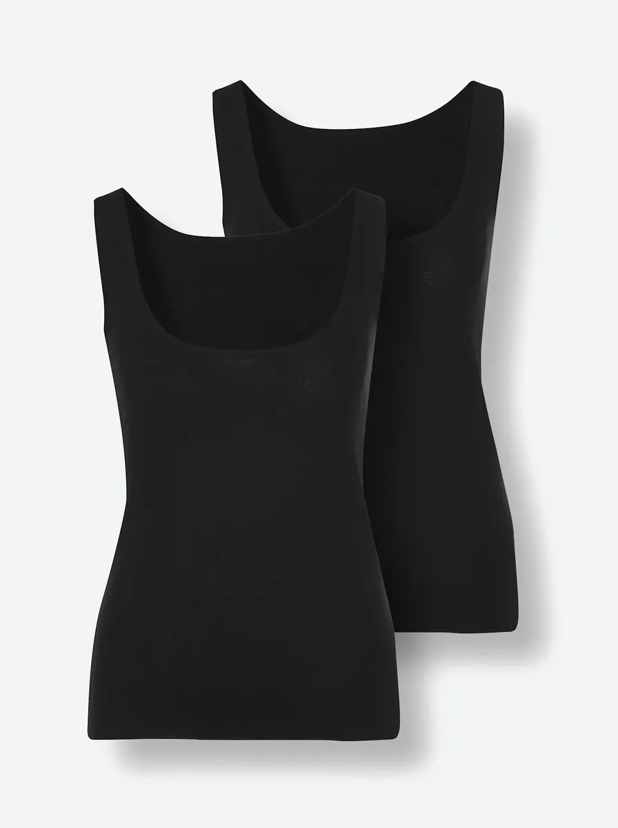 Вдвойне красиво: топ подмышки в двойной упаковке от Waschpur с удлиненной задней частью - чтобы не выскальзывал из пояса. С круглым вырезом по окантовке и плоскими манжетами. Прекрасное качество ребер. 100% хлопок.