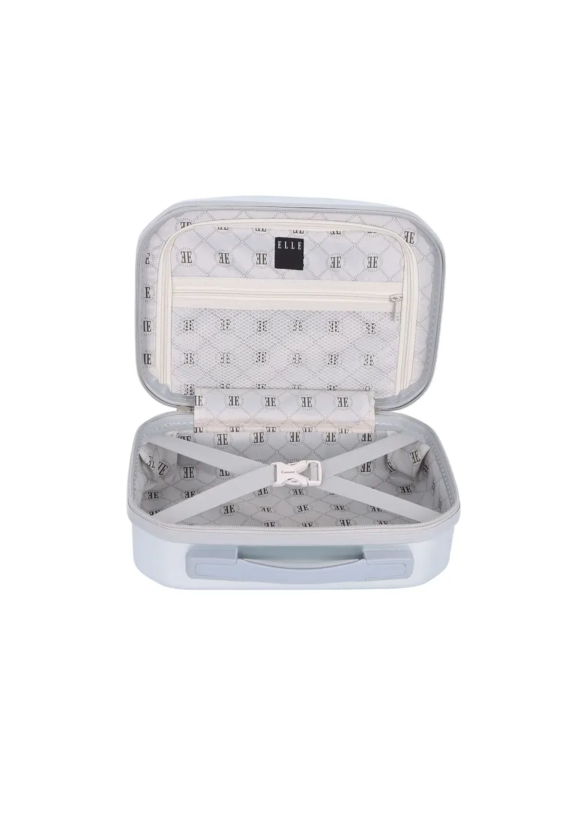 Добавьте дополнительную порцию стиля и функциональности в свою рутину красоты с помощью косметички Elle Diamond Beauty Case. Этот косметичка, изготовленная из прочного материала ABS+PC, обеспечивает безопасное и стильное хранение ваших предметов первой необходимости. Подкладка с принтом, U-образным разделителем и карманом на молнии обеспечивает организованное хранение. Этот косметичка с надежной застежкой-молнией, удобным задним ремнем для багажа и верхней ручкой для переноски предназначен для современного путешественника, который ценит моду и практичность.