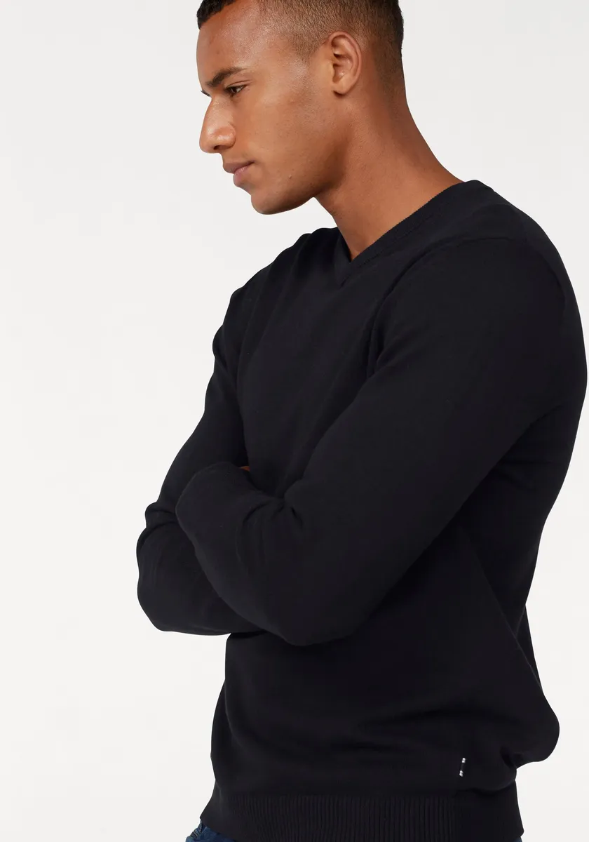 Свитер Jack & Jones с V-образным вырезом "JJEBASIC KNIT V-NECK", черный